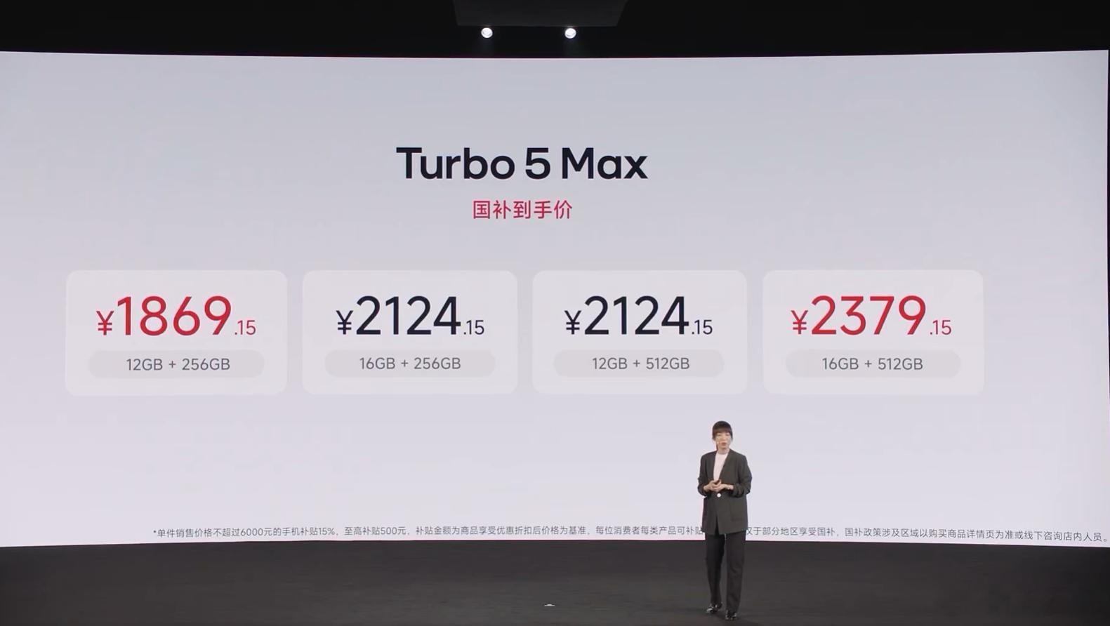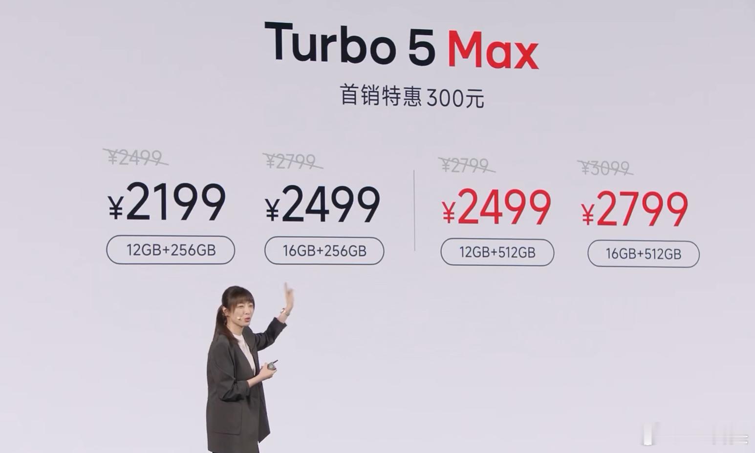 红米Turbo5发布会 Turbo 5 Max都有300元的首销价。四个版本:12+256GB、16+256GB、12+512GB、16+512GB官方价:2499元、2799元、2799元、3099元首销价:2199元、2499元、2499元、2799元国补价:1869.15元、2124.15元、2124.15元、2379.15元