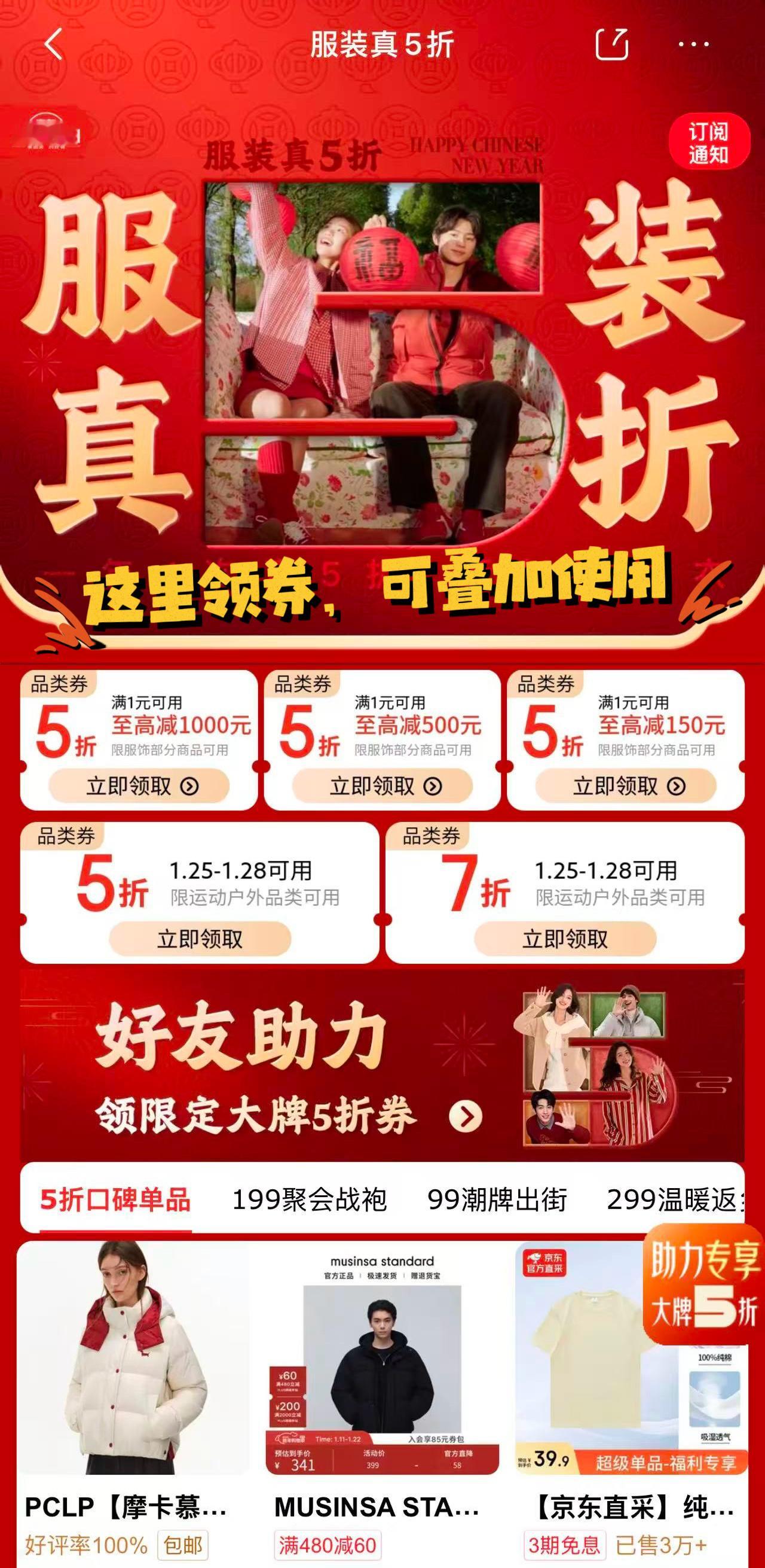 京东服装真5折一年4次 冬季保暖党狂喜!京东服装真5折太懂打工人了!京东超多明星同款羽绒服5折 平时舍不得买的上千大牌羽绒服,现在两三百就能拿下!性价比直接拉满!波司登、UR、全棉时代、耐克、阿迪、有棵树、巴拉巴拉、海澜之家、北面...1000多个服饰大品牌全部参与,无套路不凑单,满1元就享5折,3券叠加直接立减1650元!买服装上京东 上京东APP搜索“服装真5折”或戳链接网页链接,保暖衣、雪地靴、居家服一站式购齐,加上新年红衣服、毛衣、鞋子、运动服也都是5折,超多明星同款同步半价,一年仅4次,闭眼囤能穿一整个冬天,保暖装备一次搞定! 话不多说,gogogo我先冲啦!