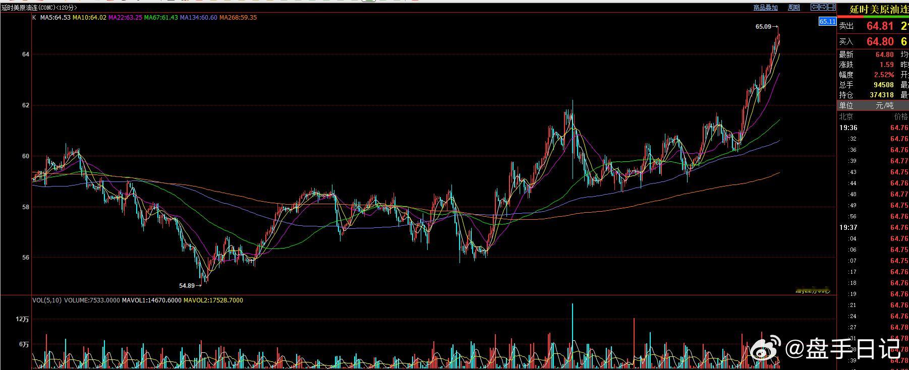 美原油在收盘后,已经触及到了65美元,完成了本来反弹的第一个压力区间65-67区间的下沿,但美原油上涨动力仍然没有结束!原油