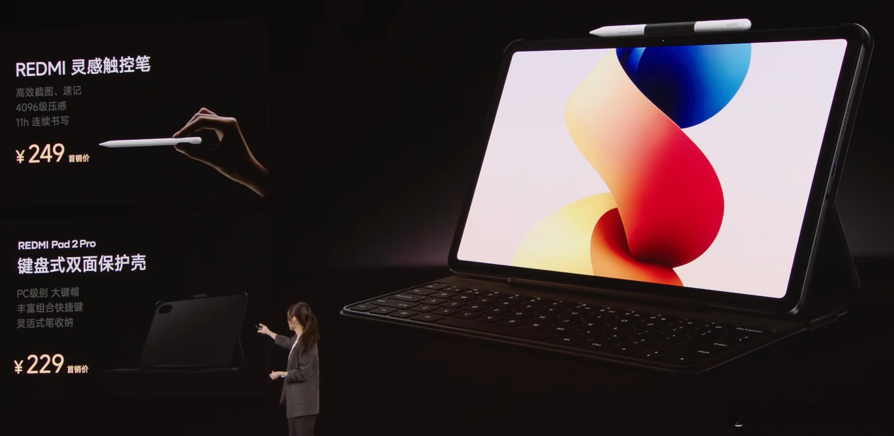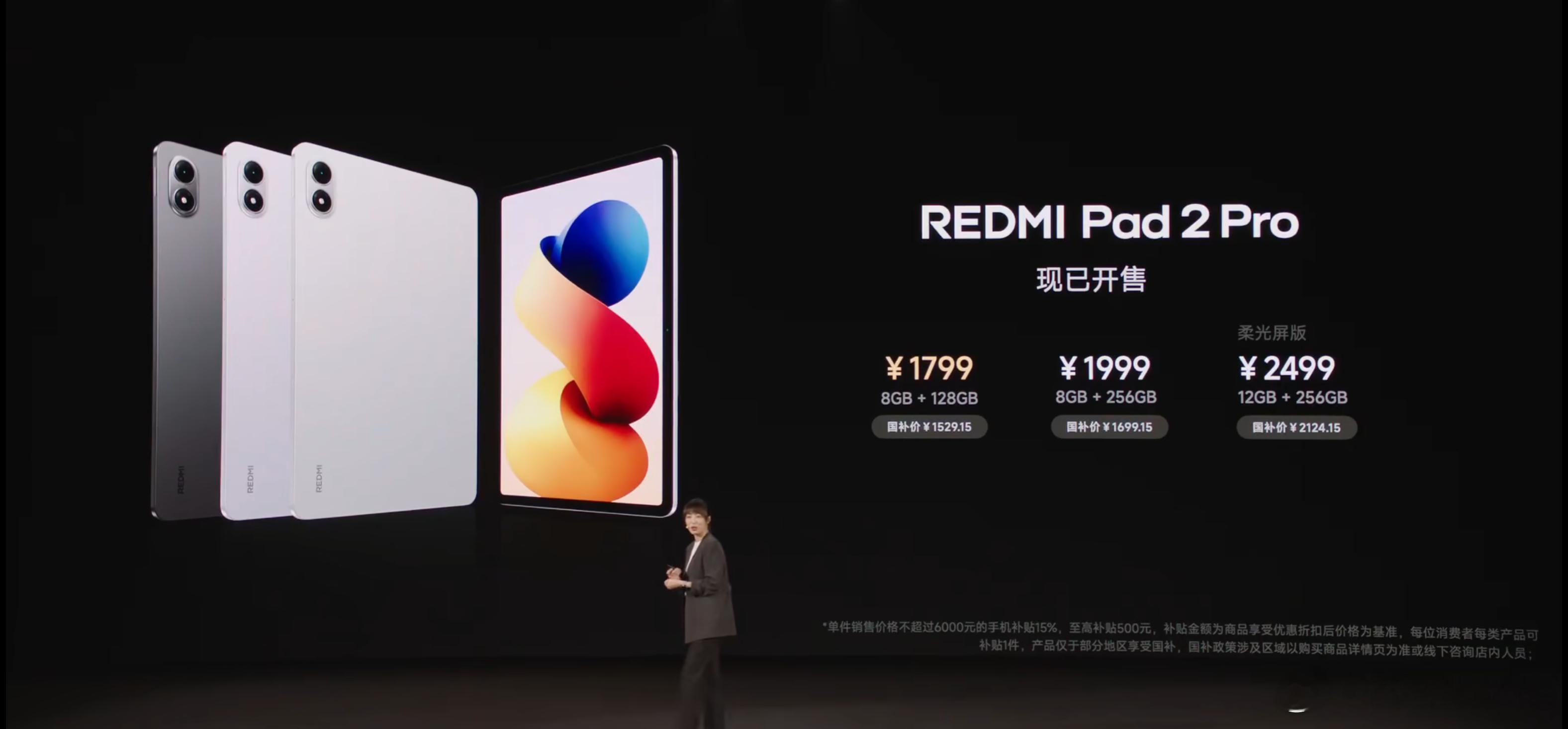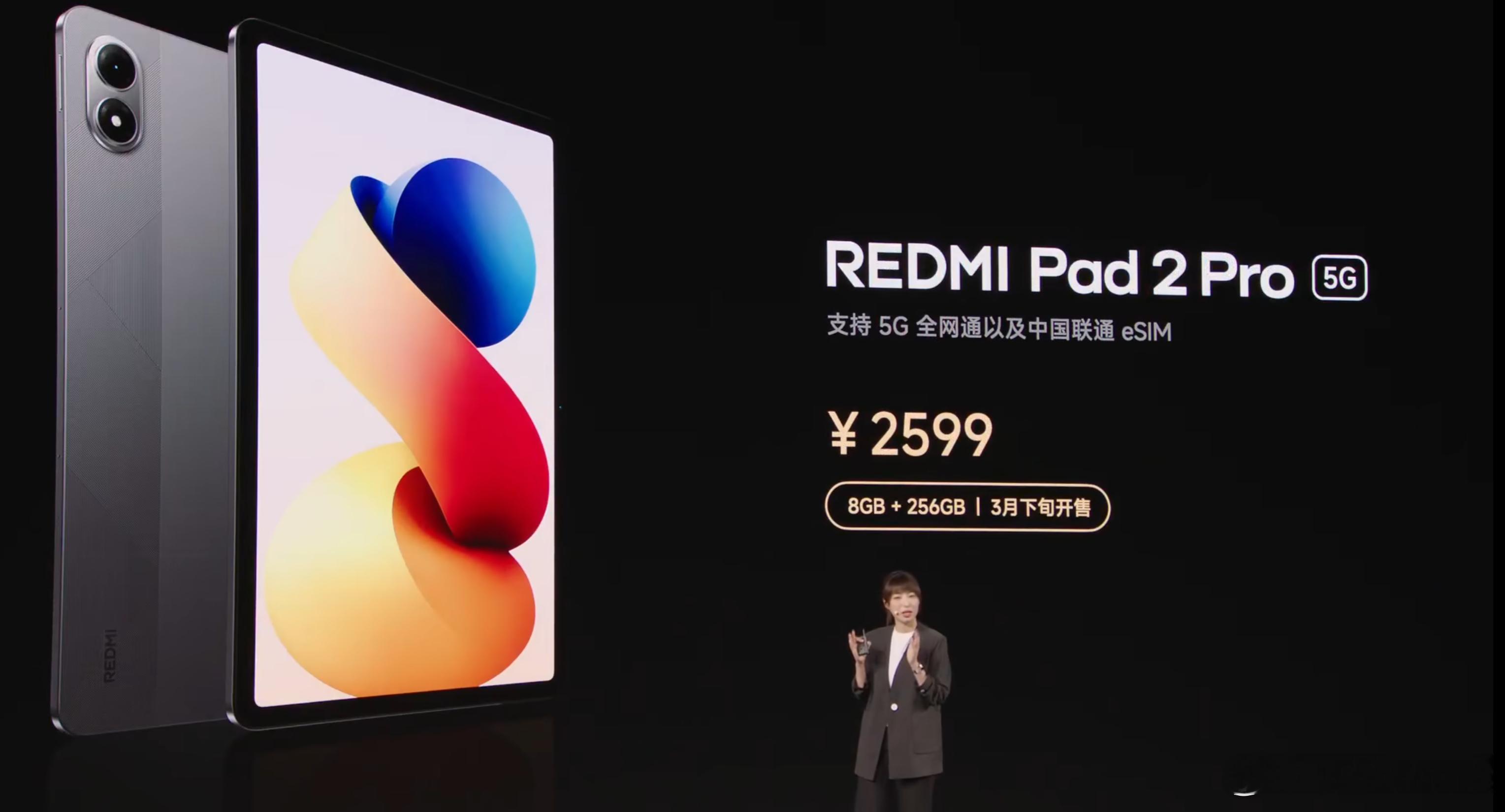 REDMI Pad 2 Pro价格:8+128,17998+256,199912+256,2499REDMI Pad 2 Pro 5G,8+256,2599(3月下旬开售)REDMI Pad 2 Pro哈利波特版,8+256,2599骁龙7s Gen4,33W+12000mAh,12.1英寸2.5K 120Hz LCD大屏,四扬声器,键盘&笔。 REDMI灵感触控笔,249键盘式双面保护壳,229红米Turbo5发布会
