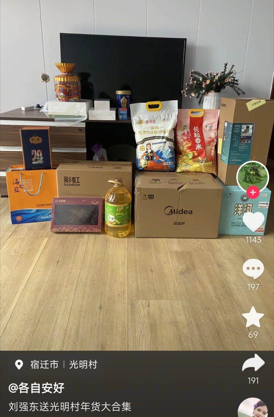 刘强东给村里人发的年货(图1),年纪大的,东子再给发一万块钱红包。