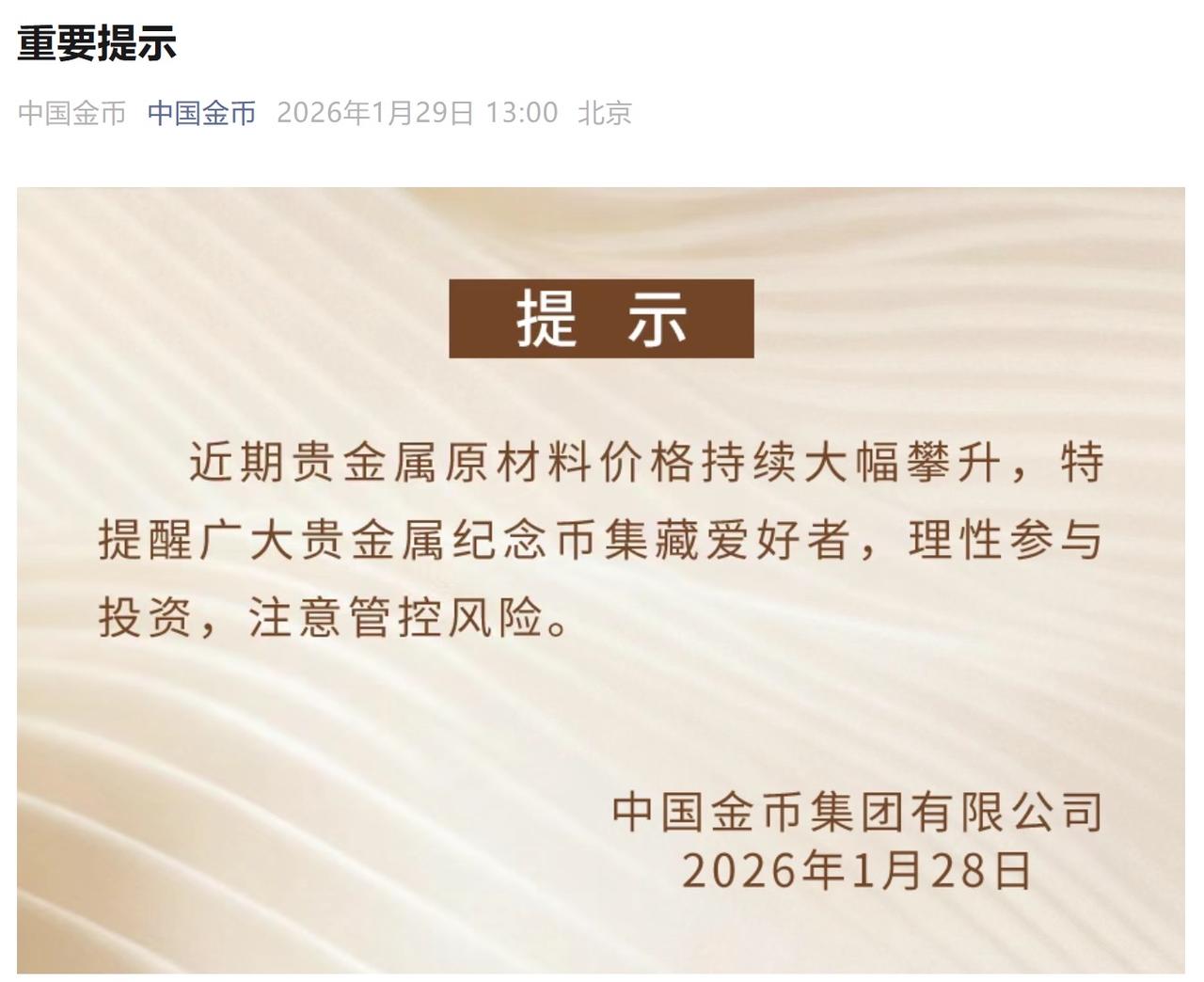 “黄金突破5550美元/盎司,白银年内暴涨15%!”最近的财经新闻看得人热血沸腾,身边不少朋友都在打听:“要不要跟风买贵金属纪念币?”就在大家摩拳擦掌准备进场时,中国金币集团的风险提示来得恰是时候——这不仅是一句提醒更是给狂热市场泼的一盆清醒剂,背后藏着无数人用血和泪换来的教训。 谁不想趁着行情赚一笔?但人性的弱点恰恰在于,越热门的赛道,越容易成为骗子的狩猎场。还记得那个轰动一时的“熊猫银币”集资诈骗案吗?骗子打着中国金币总经销的旗号,宣称“每日返利5%,40天翻倍”,硬生生骗走了235万养老钱。这些受害者不是不谨慎,而是被“无风险高回报”的美梦冲昏了头,忘了投资市场最基本的常识:收益越高,风险越大。 更可怕的是,现在的骗局早已升级。市面上那些标价几万的“湖北光绪元宝144金币”,压根就是现代仿品——清代根本没有“144”这种规格命名,权威机构也查不到任何评级记录。可就是这些成本不足200元的铜锌合金,靠着“孤品”“即将涨价”的噱头,骗得不少藏家血本无归。这背后,是骗子精准拿捏了人们“怕错过”的焦虑,用稀缺感制造出非理性的抢购潮。 或许有人说“我买的是正规纪念币”,但风险依然无处不在。现在二手平台上,面额10元的纪念币能炒到1.26万元,溢价超1200倍。可你知道吗?4年前被炒到2万元的奥运金银币,至今还有人没回本。纪念币的价值从来不止于材质发行量、题材、市场炒作都会影响价格而当前金银价格已经透支了地缘冲突、债务危机等所有利好,高位接盘很可能面临“腰斩”风险。 中国金币集团的提示,本质上是在保护我们:别把收藏变成投机,别让贪心战胜理性。真正的投资高手,从不会在热潮中跟风,而是在冷静中坚守底线。记住这3点:不碰“高返利”承诺,只走官方特许渠道,不买超出认知的藏品。 热潮退去时,才知道谁在裸泳。贵金属涨价是市场规律,但守住钱包才是生存法则。你身边有人跟风买纪念币吗?欢迎在评论区分享你的看法,一起避开这些投资陷阱!