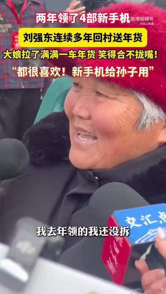 第一个领到刘强东年货大爷发声这种福利每年都有,到底是谁羡慕了我不说,大爷高兴的样