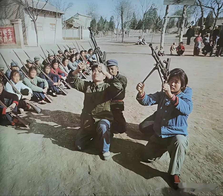 这是当年民兵训练的画面,看起来特别的威武,记得在我六七岁的时候,曾经看过生产队的民兵在打靶练习,觉得特别的羡慕,盼着有一天长大之后也能够参加这样的练习,实实在在说,那时候的人特别有激情,干劲也特别的足,那是一个激情燃烧的年代,那是一个非常值得回忆的年代!