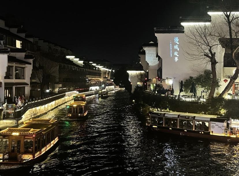 夜晚的秦淮河,岸灯火次第晕开暖黄的光,画舫凌波,晚风裹着淡淡的桂香。巷口小吃摊的蒸笼冒着白气,刚出笼的汤包皮薄馅嫩,咬开一口,鲜美的汤汁在舌尖化开,配着河畔的温柔夜色,一口烟火,一味江南,皆是金陵夜的温柔滋味。