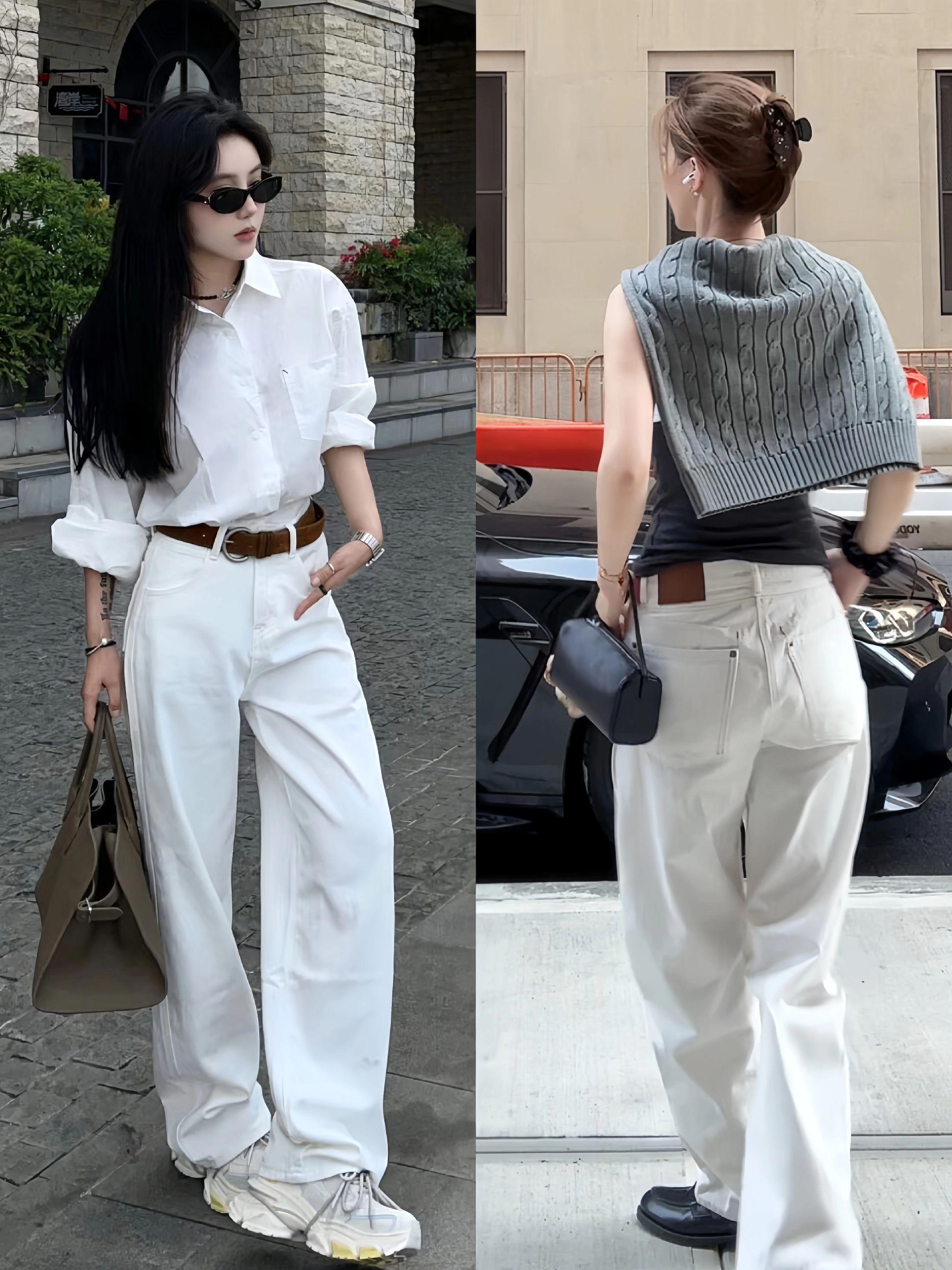都市白领穿搭指南:优雅白色衬衫+高腰裤,尽显时尚与自信!