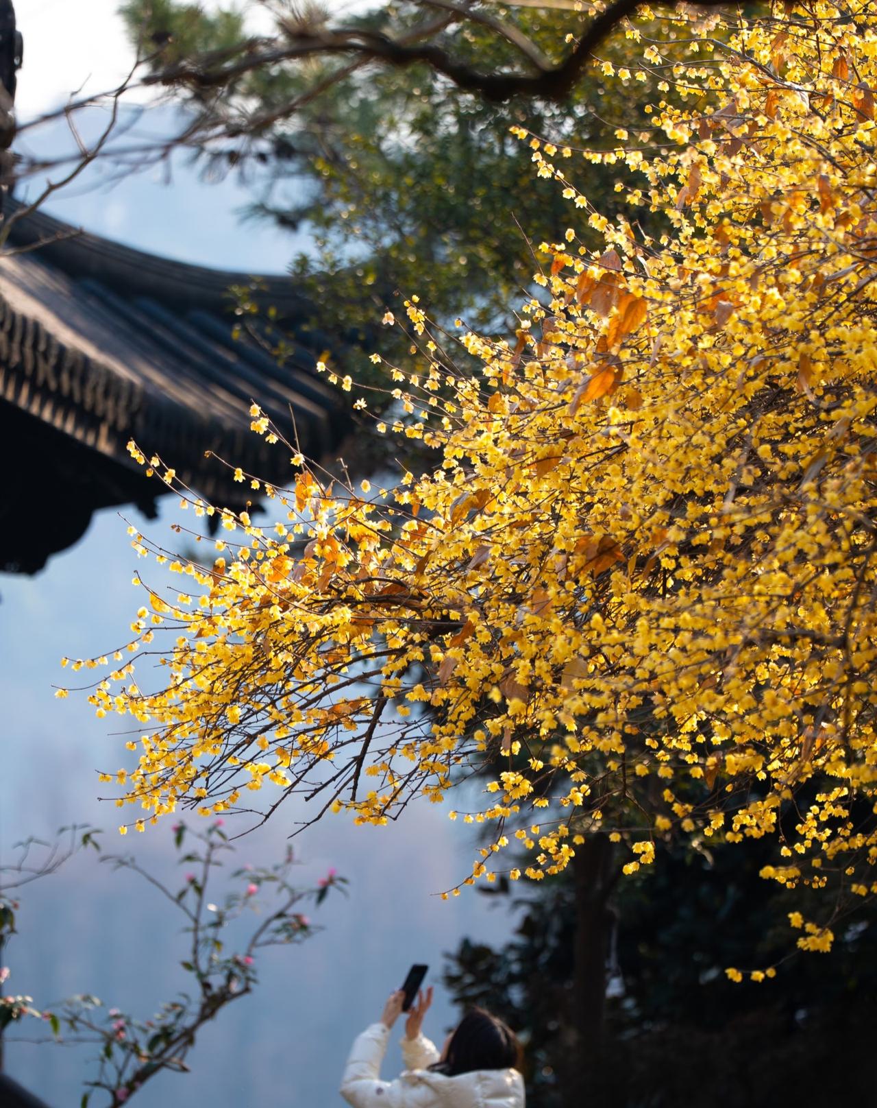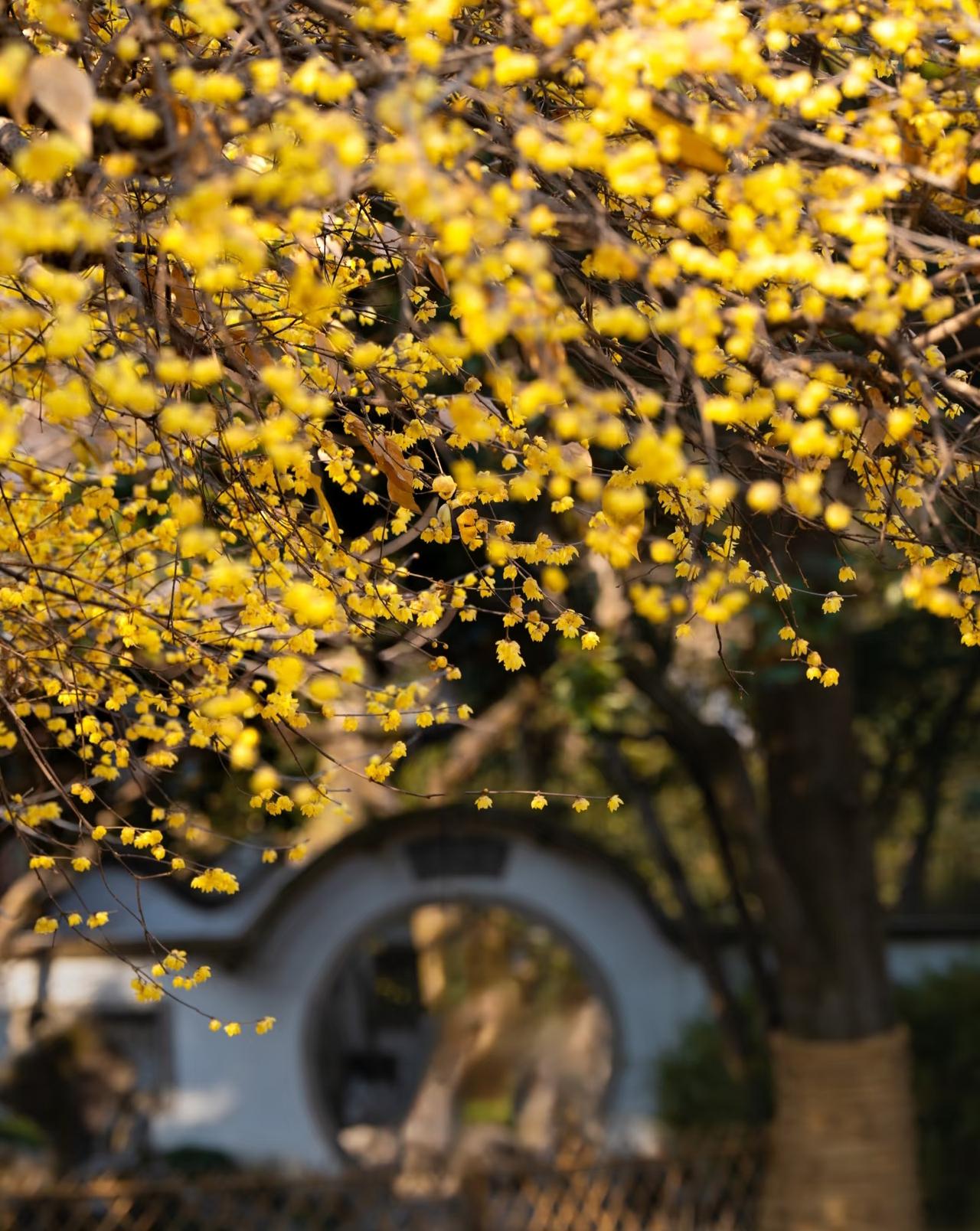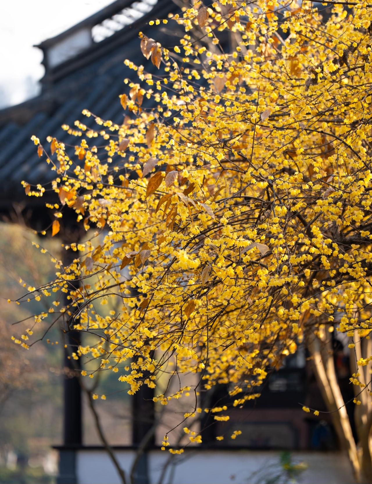 1.25实拍丨西湖花港观鱼的腊梅开了 周末游西湖 突然被腊梅的香气给唤醒🌼 就在西湖花港观鱼蒋庄内 这颗有着百年树龄的腊梅已经完全盛开 放眼望去 只见一整片黄色花海引入眼帘 与旁边的建筑相得益彰 走过去透过窗户按下快门 一张不用加以修饰的意境照片便出现了 腊梅 杭州腊梅 杭州旅游 随手拍西湖风光 杭州西湖 杭州腊梅