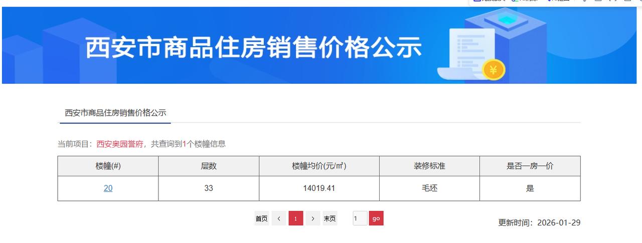 快讯!刚刚,西安住建局公示了浐灞国际港韩森东路板块“奥园誉府项目”新一批房源的价格,均价14019.41元/㎡! 奥园誉府项目位于西安市浐灞国际港酒十路以东、高楼路以南,总占地面积约112.8亩,规划约37万方,容积率3.5,绿化率35%,采用围合式布局,规划11栋高层、6栋洋房、一栋幼儿园。 项目位于西安2.5环,周边发展成熟,商业、教育、生态等配套完善;自带1所幼儿园(西安市浐灞二幼创新幼儿园,由西安市浐灞第二幼儿园全面管理,已投用)、自带的约2万㎡社区商业; 东南侧紧邻西安市浐灞第二十三小学、西安市浐灞第四初级中学(八十三中东校区);距离龙湖香醍天街、西安浐灞龙湖小学约500米;向西直线距离约1.4KM处便是幸福林带;周边还有后宰门小学幸福校区、西安地铁6号线-卫星测控中心站等配套。 项目2019年4月入市,首开创造了2000人摇的盛况,369套房源,线上意向登记2282组,开盘即售罄,劲销4.6亿;此后项目多次推售多次摇号,为著名千人摇红盘。不过,后来项目曾遇到一些波折.... 项目去年11月曾公示了1栋9层小高18套房源的价格,全部为大面积房源,也是项目时隔近3年再次上新! 本次价格公示,项目公示了20 楼 一栋楼的价格,是一栋33层的高层产品,面积区间109.30㎡-239.48㎡,主力户型面积127.16㎡、112.86㎡、112.99㎡、110.34㎡、109.30㎡、111.93㎡、111.80㎡、125.96㎡,楼栋均价14019.41元/㎡,共254套毛坯房源。 值得注意的是,项目本次推出的房源价格和之前推售时价格差不多,不过当下市场同价位段可选产品较多,且在产品力上有所提升,因此项目可能面临比较大的竞争....