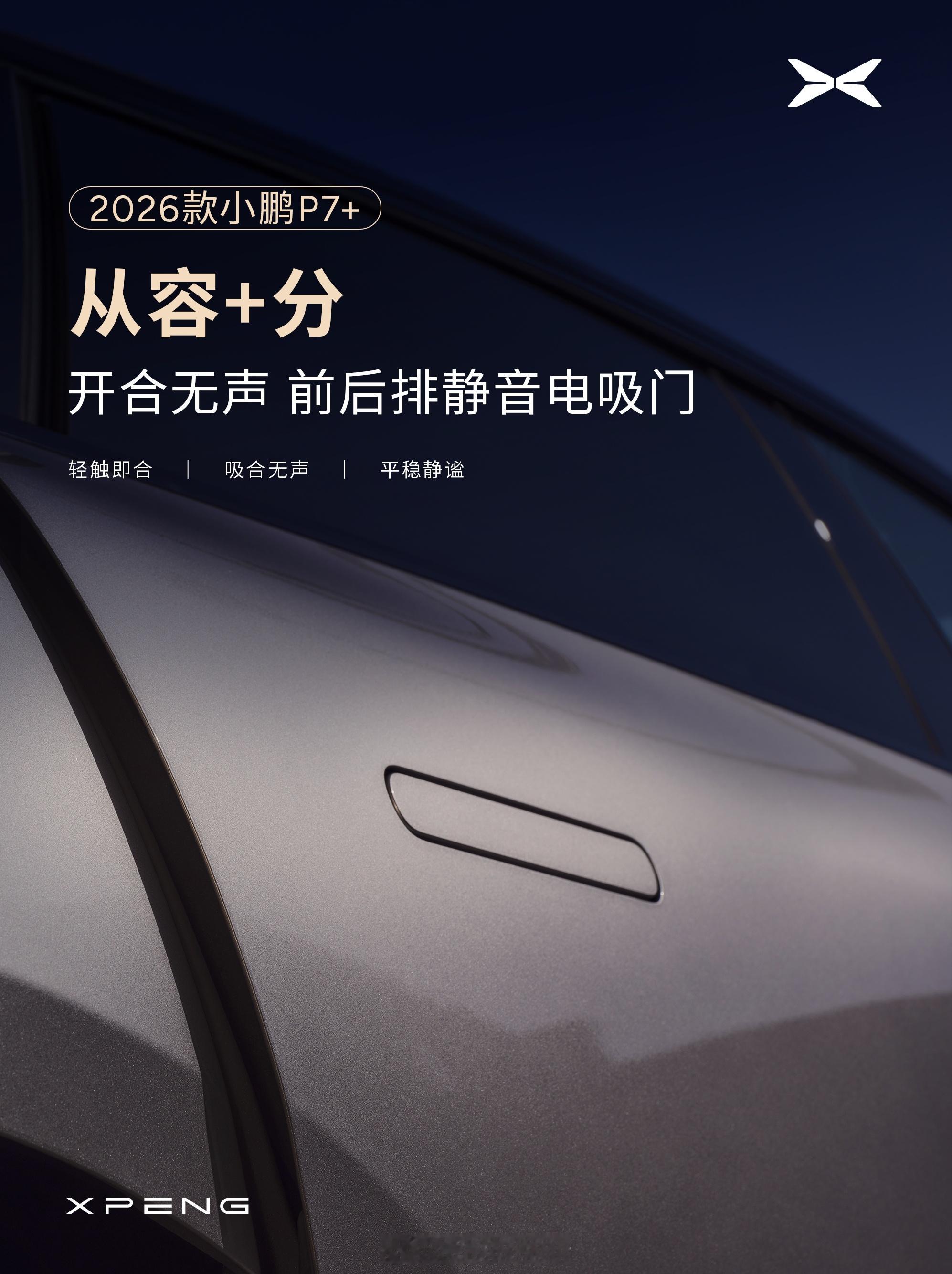 小鹏P7+给欧洲街头按了静音键新款小鹏P7+在欧洲街头做了这样一个实验,当关上标配的静音电吸门,世界就瞬间清净,一列高铁呼啸而过时,车内竟然还能做ASMR静谧性挑战。无论旁边有车辆驶过,还是外面下起大雨,车内就像按了一键静音,与外面的喧嚣再无关系!小鹏P7+标配静音电吸门,搭载双层夹胶玻璃,配有RNC主动降噪技术,实现旗舰级NVH表现,舒适性达到了世界领先水平