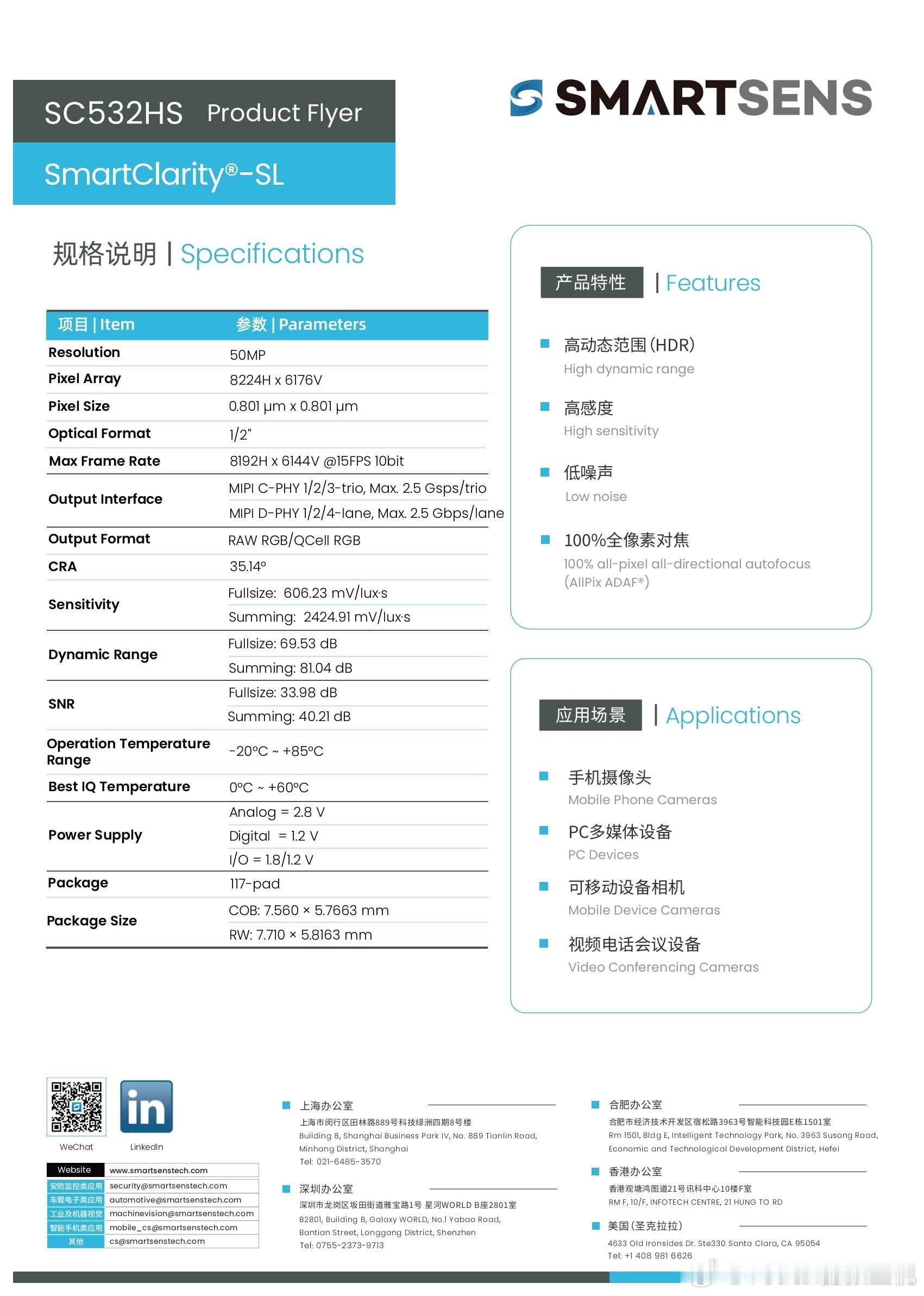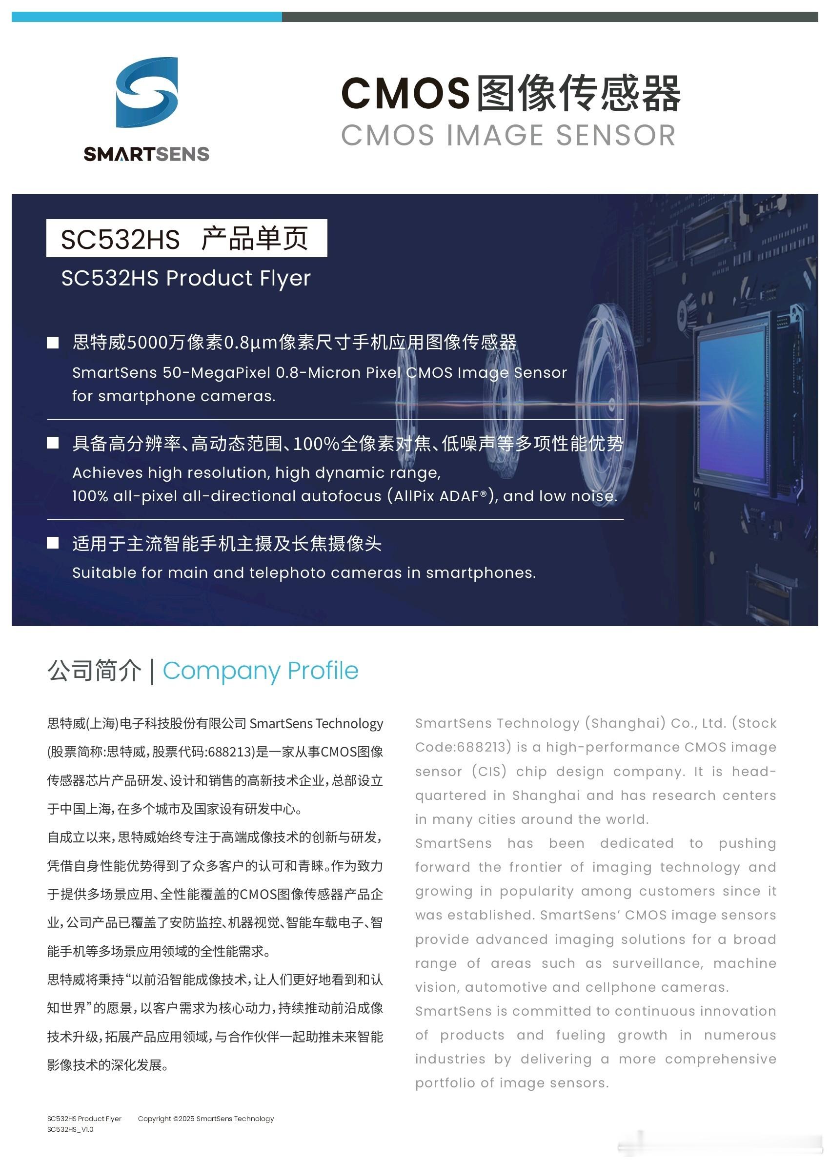 今天 REDMI Turbo 5 Max 上首度现身的『光影猎人 600』传感器实际上就是斯特威 SC532HS 传感器。这颗传感器于去年 3 月 20 日发布,基于思特威 SmartClarity-SL 技术平台打造,采用 55nm Stacked BSI 工艺制程,搭载思特威专利 PixGain HDR、SFCPixel 及 AllPix ADAF 等多项技术。SC532HS 的尺寸规格与索尼 LYTIA-600 / 三星 GN8 类似,是一颗单像素面积 0.8μm、5000 万像素、1/2 英寸的传感器。它的亮点之一是高动态范围:SC532HS 搭载了思特威 PixGain HDR 技术,动态范围可达 80.89dB,并且 SC532HS 支持 PixGain HDR 模式下 4K 30fps 视频录制。此外,SC532HS 支持 Staggered HDR 及 NDOL HDR 等多种 HDR 模式。SC532HS 亦具备快速对焦能力,其搭载了思特威 AllPix ADAF 及 Sparse PDAF 技术,拥有双模式自适应快速对焦能力。在暗光场景下,SC532HS 可开启 AllPix ADAF 模式,实现 100% 全像素对焦。在光线充足时,SC532HS 可以切换至 Sparse PDAF 模式,通过部分像素相位检测实现快速对焦,降低运行功耗。SC532HS 亦支持硬件全像素 Remosaic 的输出能力,可实现 5000 万像素高分辨率快速出图,同时支持 1250 万像素的全尺寸视频录制能力。硬件 Remosaic 全像素输出有利于降低手机 SoC 的算力需求,可以适配更多的中低端平台的产品。这也是一款『全流程国产』的 Stacked BSI (背照式)CMOS 图像传感器。SC532HS 被设计为可适用于智能手机主摄及长焦摄像头,所以……后面也会有厂商将其应用于潜望式长焦镜头,实现在长焦端的高动态范围和快速对焦的影像能力。