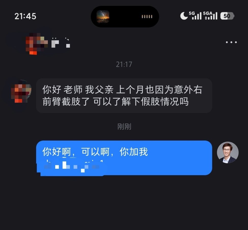 天有不测风云啊。。。一位网友的父亲,54岁,胳膊被打草机挤压伤,当时是手腕处完全断离,手术接上后感染没活下,就从上面处截肢了。他找到我咨询智能假肢,我已经帮他对接给相关企业。唉,真是麻绳专挑细处断啊。一个普通乡村家庭,干农活时,断了手臂,以后劳动力可能会大打折扣。好在他有一个孝顺的孩子,不仅积极帮父亲治疗,还帮父亲联系智能假肢。我们的科技可以改变生活,更应该改善弱者的生活水平。