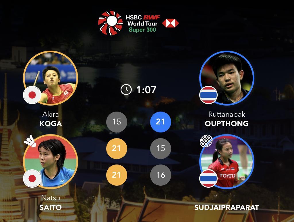 古贺辉/斋藤夏🇯🇵 15-21、21-15、21-16 🇹🇭鲁塔纳帕克/杰尼查下轮:苏帕克/奥恩尼卡🇹🇭 vs 🇯🇵古贺辉/斋藤夏2026年泰国羽毛球大师赛