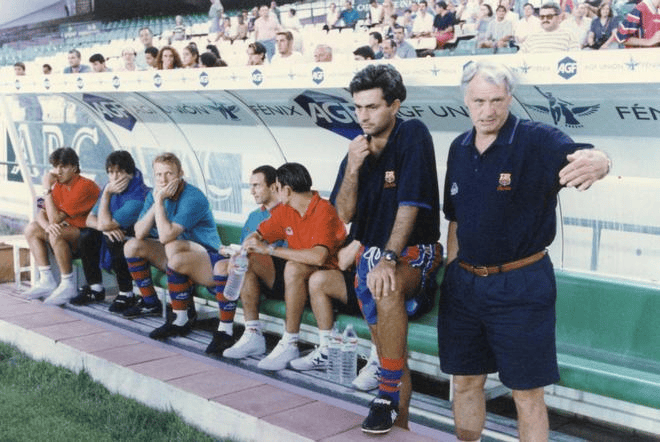 穆里尼奥在1996年至2000年间在巴塞罗那度过了一段关键的教练生涯初期,先后担任过翻译以及助理教练。虽然照片中的不少场景对如今的球迷而言已可能已经相当陌生,但也能看到多位熟面孔同框出现,包括当瓜迪奥拉、恩里克,罗纳尔多,范加尔等。