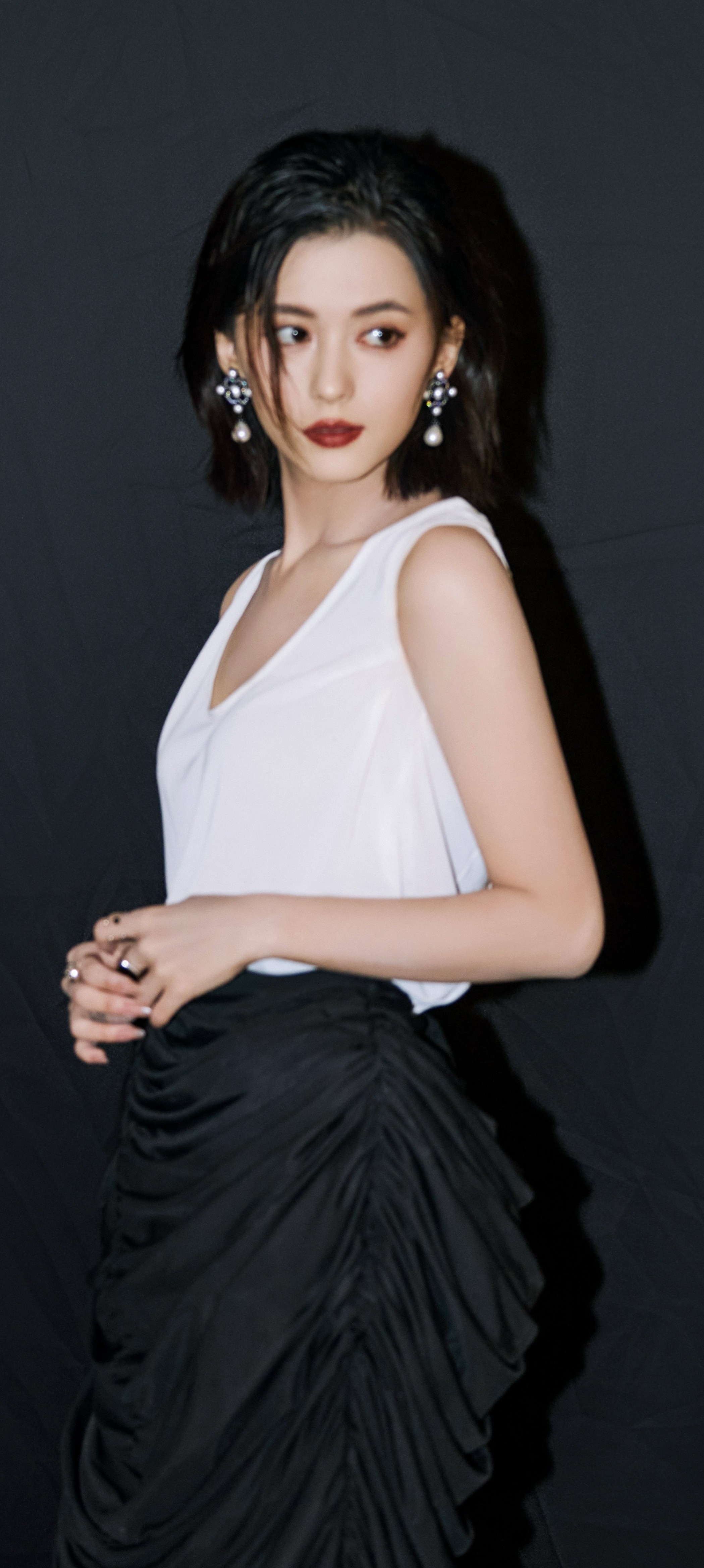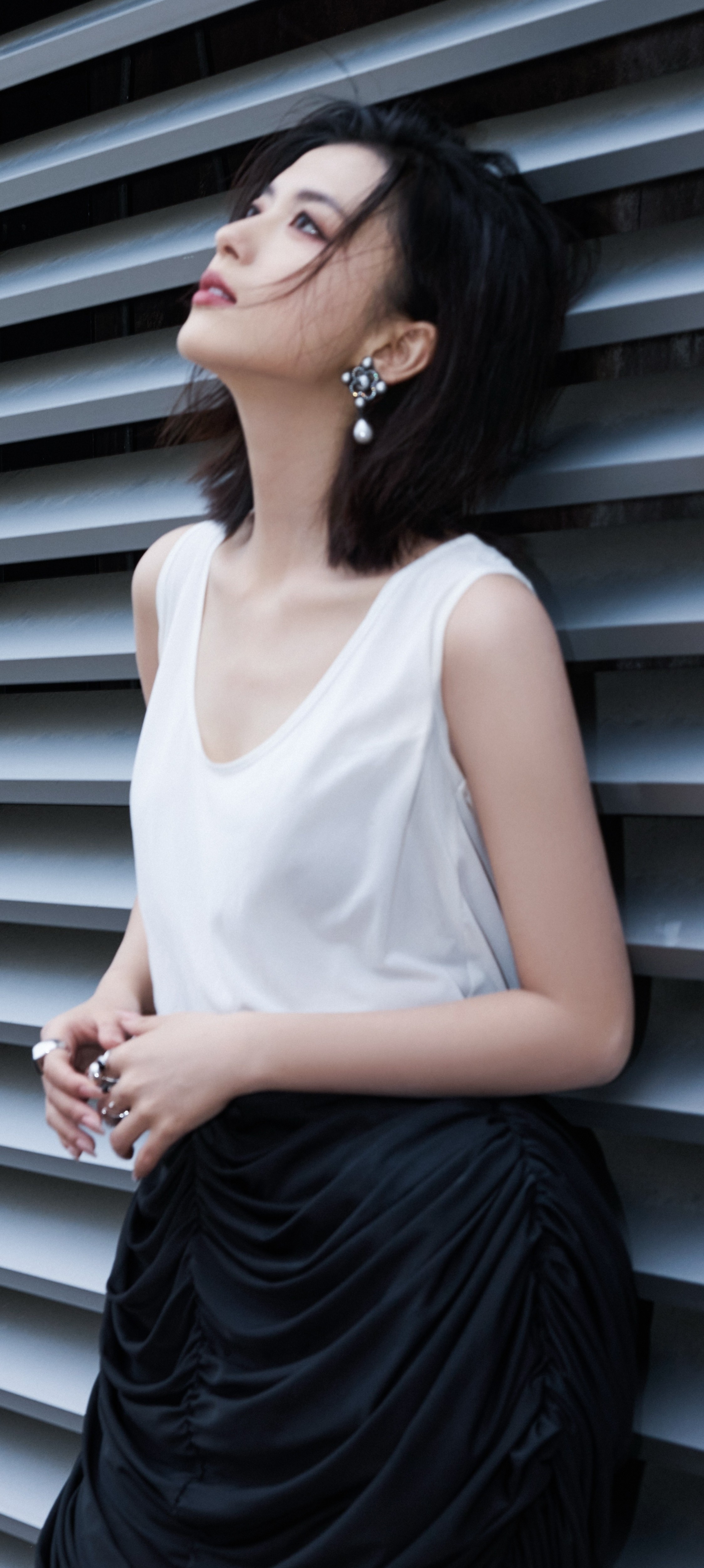 卢昱晓手机壁纸,白色系穿搭清纯甜美。卢昱晓