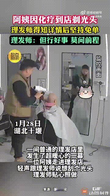 太暖心了!湖北十堰一位阿姨走进一家理发店,让老板帮她剃光头,老板刚开始也没在意,