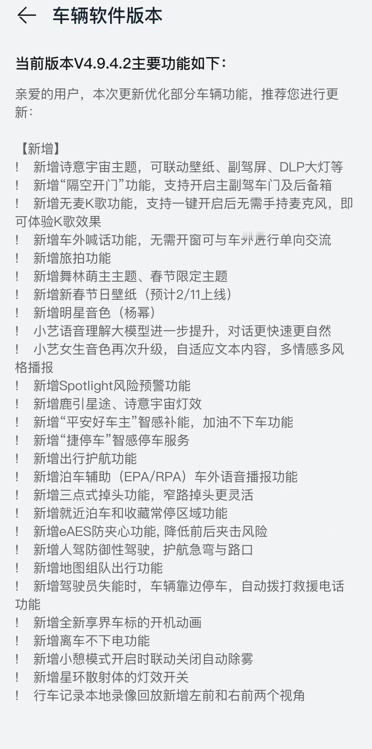 给我的享界S9T OTA车机咯,这次增加了好多功能我喜欢的旅拍和隔空开门都有了新年的桌面也有了,提前来的年味很应景啊刚好后面几天我把车拿去贴膜这下新版本+新衣都有了