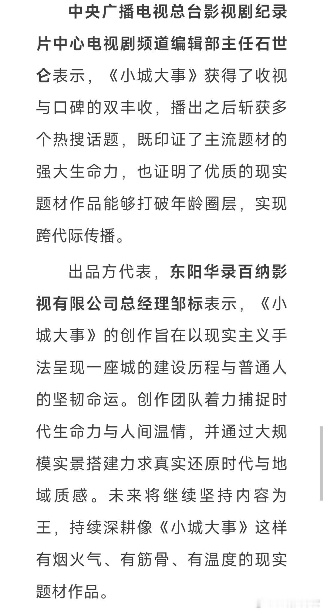 电视剧《小城大事》研讨会召开!重磅阵容出席研讨会,同时给到高度赞扬!小城大事赵丽颖李秋萍