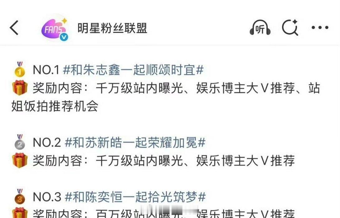 微博的应援搭子荣耀之战活动top3的人选来了,分别是朱志鑫、苏新皓、陈奕恒,谁最有机会走花路呢?