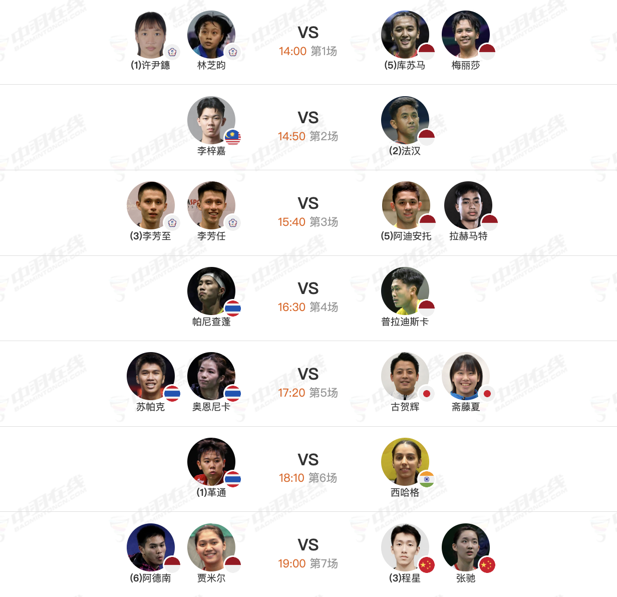 2026年泰国羽毛球大师赛 1月30日各单项8进4赛程,下午14点开赛:【1号场地】7、程星/张驰🇨🇳 vs 🇮🇩阿德南/贾米尔【3号场地】1、鲍骊婧/李怡婧🇨🇳 vs 张净惠/杨景惇2、朱轩辰🇨🇳 vs 🇮🇳塔伦4、胡珂源/林祥毅🇨🇳 vs 🇲🇾阿兹林/陈蔚强