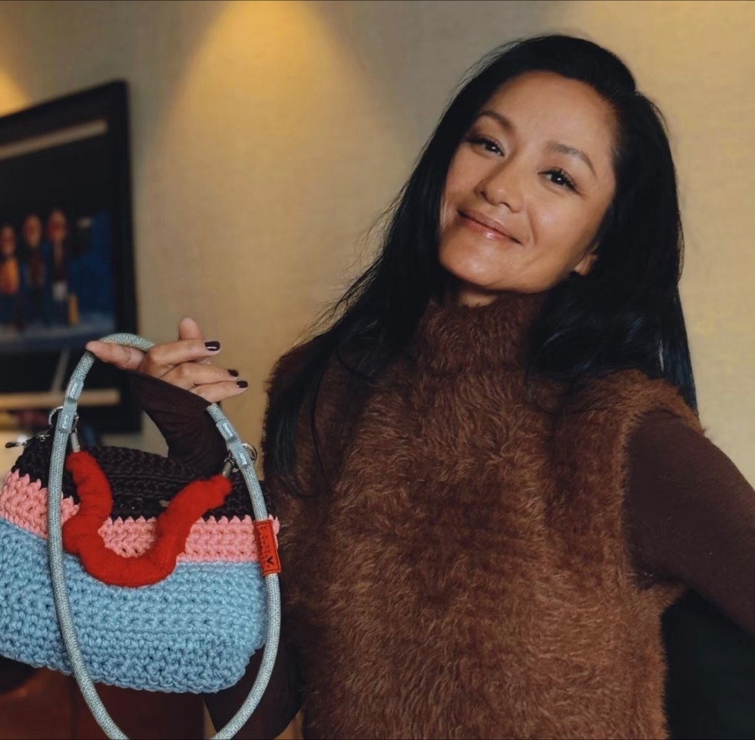 瞿颖晒自己织的包包,原来姐姐也是织女。