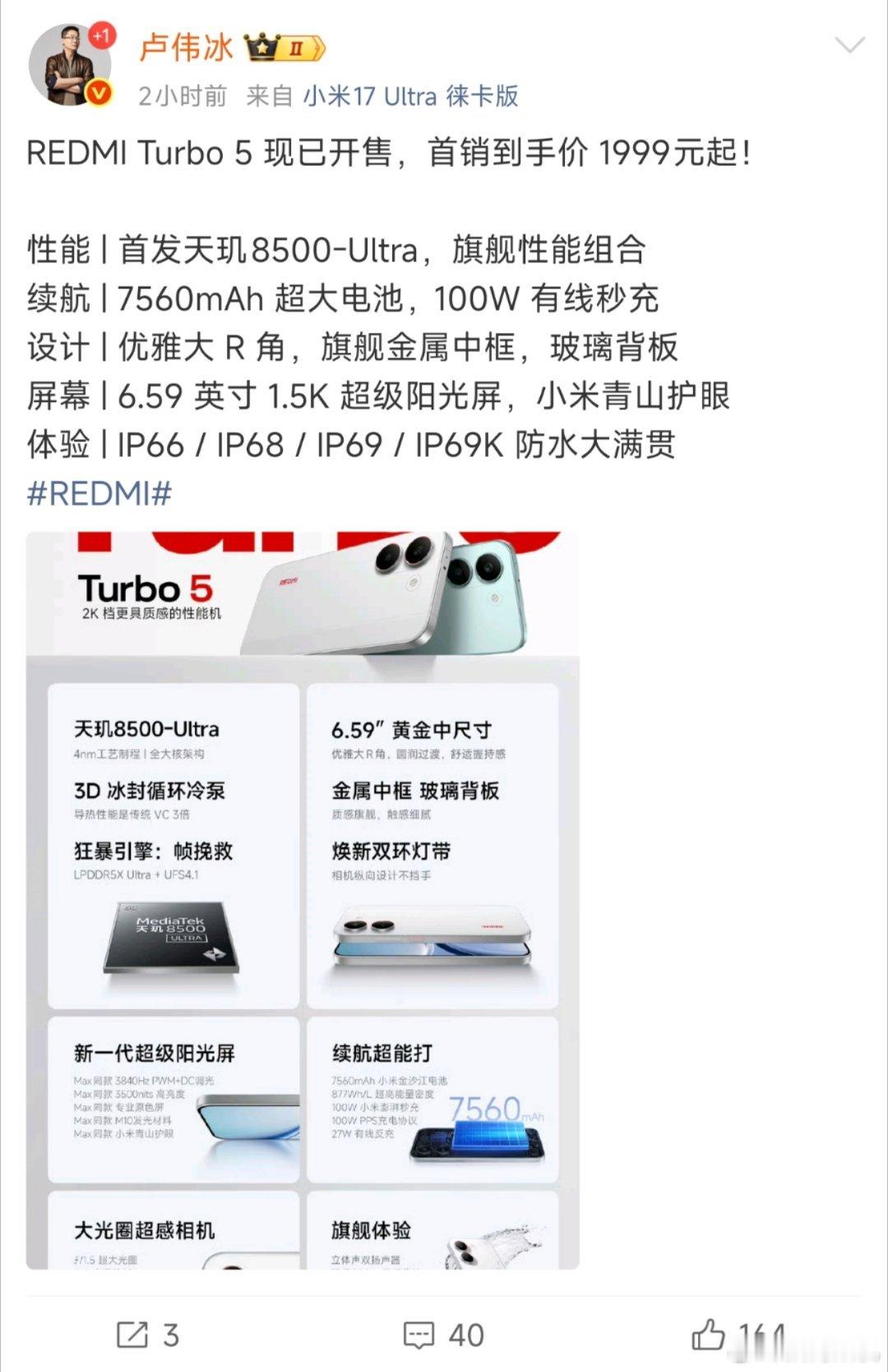 redmi turbo这次我觉得有一个好,这种中端机过一遍参数也不废话,20分钟就公布价格了,以后小米还有其他友商除了旗舰真可以跟进一下。