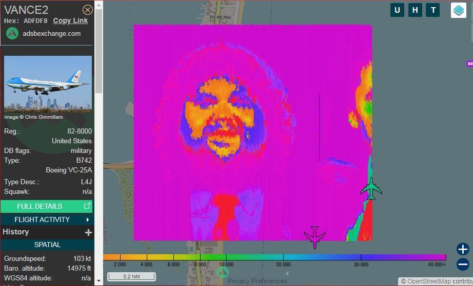 🔻这样做的人就像是 ADS-B 领域的班克西。🔻VANCE 2 今天再次伪装成空军一号的信号,并在佛罗里达海岸、海湖庄园上空进行更多与 JD·万斯相关的艺术创作。🔻这些不同颜色是通过假信号欺骗高度来实现的。热点现场海外新鲜事