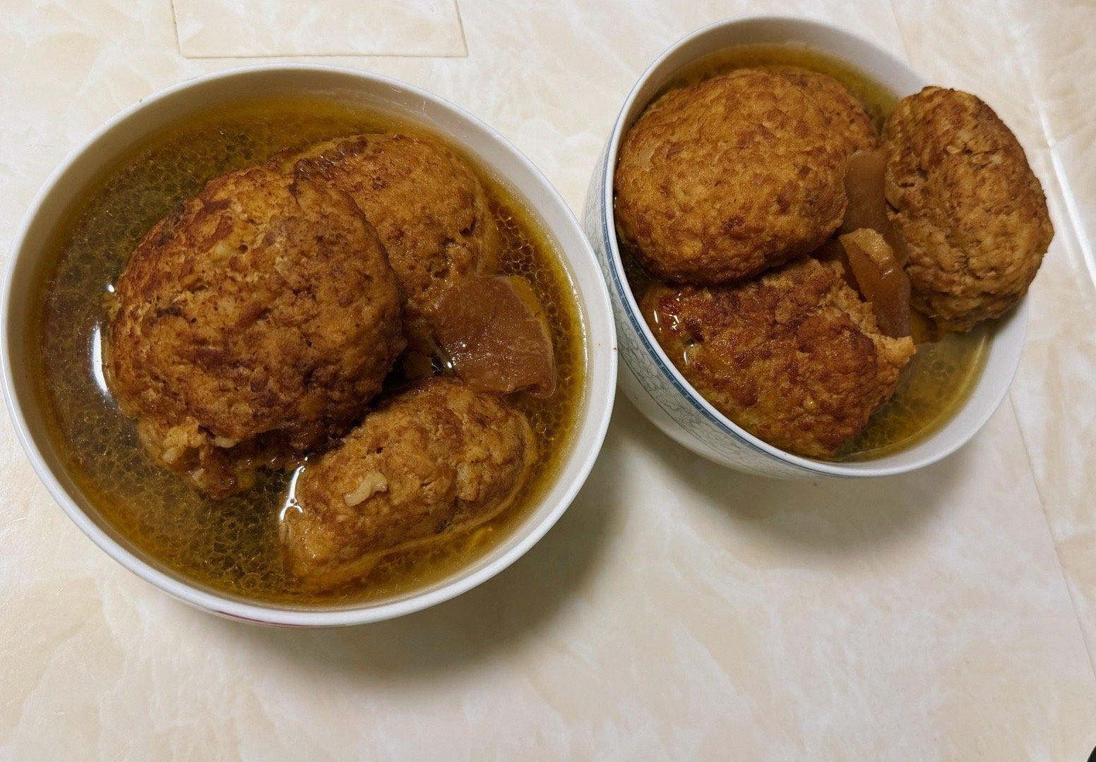 我妈给我做了好多狮子头特地加了马蹄