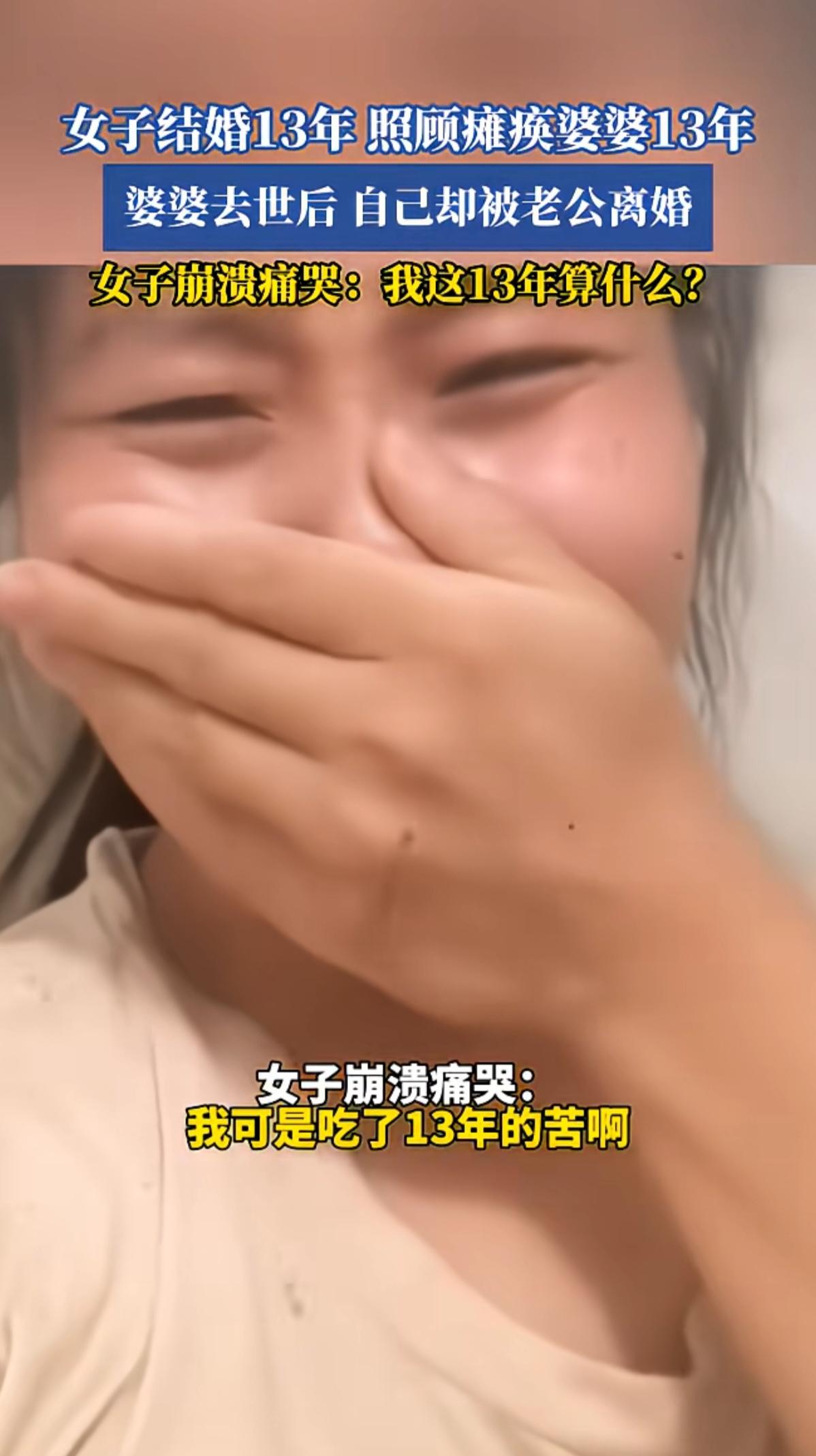 这是往人心口捅刀啊!结婚13年,照顾瘫痪的婆婆13年,婆婆一去世,老公就离婚 人的心怎么能黑成这样,把女子当了13年的免费保姆啊,过河拆桥,忘恩负义,婆婆去世了,没负担了,马上离婚 真为女子感到不值,这样善良的人有几个,能尽心尽力照顾瘫痪老人13年,哪怕亲生儿女都很难做到,这么真诚的人被辜负 这也是她的幸事吧,离开渣男,她以后一定会越来越好的