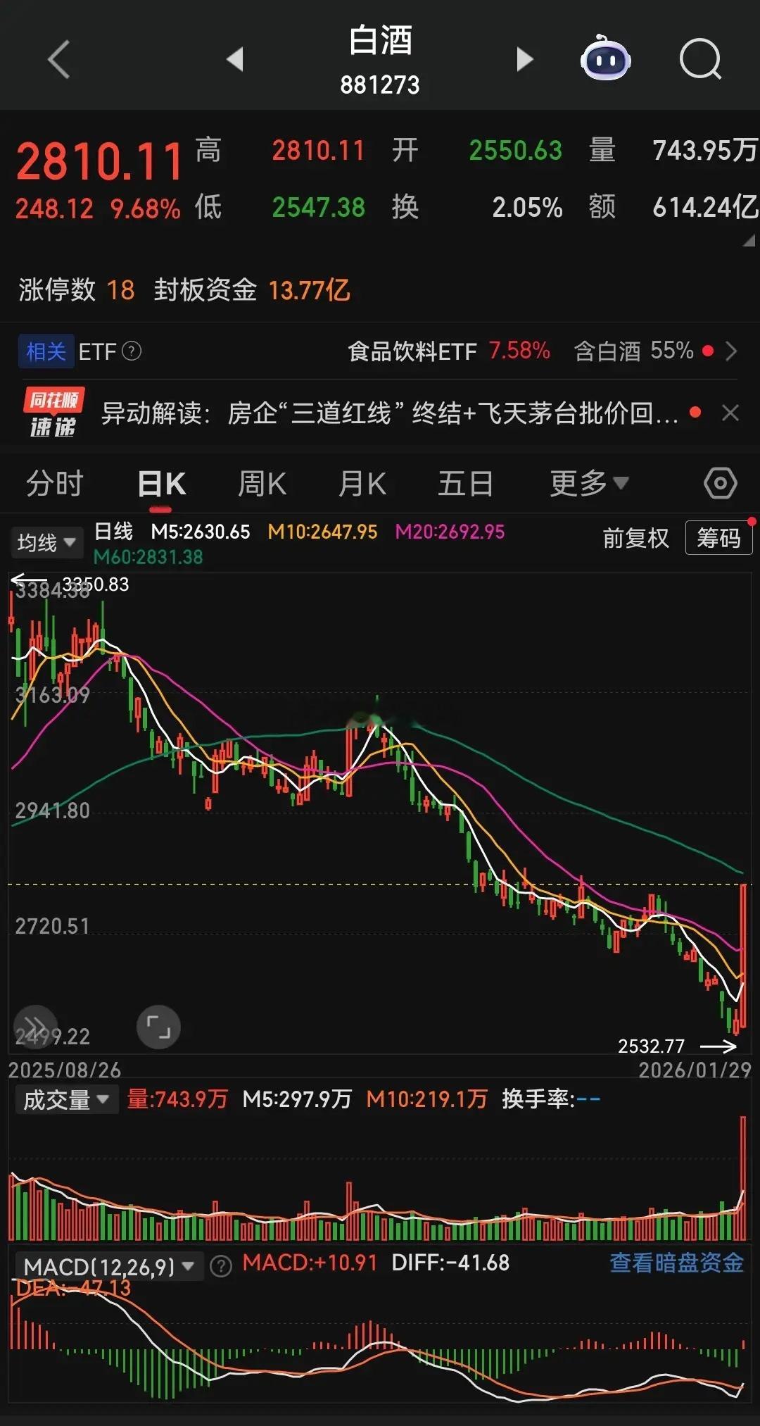 今天白酒板块的集体涨停,堪称A股几十年难遇的奇观,但其上涨逻辑和行业基本面毫无关系——既不是白酒行业业绩超预期,也不是消费复苏力度加码,核心大致是市场释放的“全面上涨信号”:此前资金一味扎堆有色板块疯炒,单一赛道独舞的行情本就难以持续,轮动到其他板块是必然趋势,而白酒的集体涨停,正是这场轮动的“启动哨”。回顾近期行情,资金近乎偏执地盯着有色板块猛推,虽然造就了局部牛市的疯狂,但这种“一家独大”的格局暗藏风险。单一板块持续暴涨会导致获利盘不断堆积,一旦市场情绪转向,丰厚的获利盘集中出逃可能引发市场全面恐慌,而恐慌式切换往往会让行情失控。与其等市场情绪失控后被动调整,主力索性主动开辟新战场——这正是机构拉抬白酒、地产的核心思路。另外,今天白酒板块,能实现集体涨停绝非偶然:经过长期调整,散户筹码早已清洗充分,该割肉离场的早已跑路,剩下的要么是“死猪不怕开水烫”的坚定持有者,要么是深度套牢不愿动的,散户抛压几乎可以忽略不计。机构拉升时几乎没遇到什么阻力,轻轻松松就把板块推至涨停,既避免了硬压有色引发的市场动荡,又成功激活了新的资金承接盘,堪称“另开一席”的聪明操作。再看当前市场格局,地产和医药板块还在底部稳稳趴着,在轮动趋势明确的背景下,它们离大幅拉升其实已经不远了。一方面,市场需要更多板块参与进来,才能形成真正的全面上涨行情,单一赛道撑不起长期牛市;另一方面,地产、医药作为权重板块,估值处于历史低位,且具备足够的资金容纳空间,是机构后续接力的理想选择——毕竟在白酒已经打响轮动第一枪后,资金不可能一直停留在一个新赛道,挖掘底部低估值板块是必然路径。短期市场最煎熬的,莫过于两类投资者:一类是看着有色板块天天疯涨,却因为恐高不敢上车,只能眼睁睁看着行情溜走;另一类是自己持有的票持续阴跌,和有色、白酒的暴涨形成鲜明对比,这种“别人的票涨上天,自己的票跌到底”的落差,比吃了苍蝇还难受。更让人纠结的是,很多时候你刚割掉阴跌的持仓,准备追高热门板块,原来的票就突然偷袭拉升——就像今天的白酒,正是在散户几近绝望、筹码充分沉淀后,才迎来了爆发。其实当前市场的逻辑已经很清晰:单一板块炒作的时代过去,轮动上涨才是可持续的行情。机构选择在有色行情未退潮时拉抬白酒,就是为了平稳切换,避免恐慌性调仓;而白酒的成功启动,也给后续板块指明了方向——那些估值底部、筹码干净、散户占比低的板块,更容易成为资金下一个集中攻击目标。因此,短期对于还在底部的地产、医药来说,白酒的涨停已经传递出明确的信号:市场资金正在主动寻找新的突破口,而非死守单一赛道。只要市场整体情绪保持回暖,资金从获利丰厚的有色板块逐步分流,这些趴在底部的板块,大概率会迎来属于自己的高光拉升时刻。总的来说,今日白酒集体涨停不是孤立事件,而是市场从“单一赛道”转向“全面轮动”的关键信号。虽然短期散户可能还在为持仓差异而焦虑,但从行情发展趋势来看,轮动到低估值底部板块是必然。与其纠结于错过的有色行情,不如多关注那些还在底部稳稳趴着的板块——毕竟在全面上涨的预期下,没有哪个板块会一直被资金遗忘,耐心等待轮动到位,或许比盲目追高更靠谱。