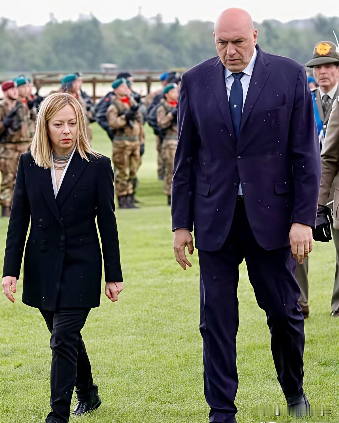 面对这样的大汉。小女生也能镇住场。高下立见,不可小觑! ——总理和她的国防部长