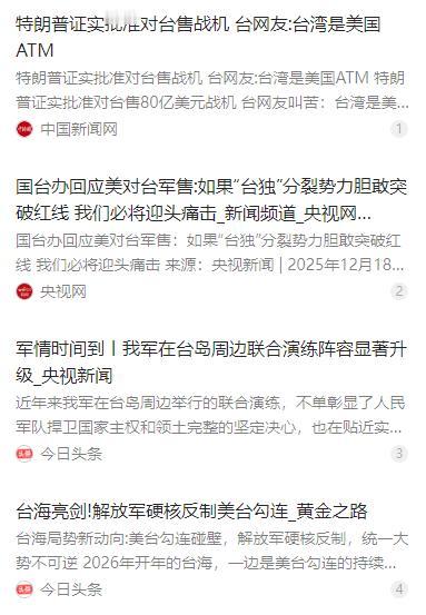 特朗普傻眼了,就在他出售武器装备给台湾,中国大陆首次以“武力”威慑美国,公开表态:解放军将采取有力措施捍卫国家主权领土。 麻烦看官老爷们右上角点击一下“关注”,既方便您进行讨论和分享,又能给您带来更多优质的内容,感谢您的支持! 特朗普政府任内曾多次推进对台军售,其中 2019 年敲定的 66 架 F-16V 战机军售案总价达 80 亿美元,此前还批准了 22 亿美元的 M1A2T 坦克军售项目,这也是其任内第五次对台军售。美方的一系列操作,说到底就是想靠卖武器赚大钱,同时借着台海话题造势,还想把台湾当作牵制中国发展的棋子,三重心思昭然若揭。 面对美方的步步紧逼,中国大陆一改以往多从外交层面谴责、对涉事企业实施制裁的应对模式,首次直接将解放军的行动与捍卫国家主权领土紧密挂钩,公开表态解放军会采取有力措施,直面回击美台勾连的恶劣行径,这份强硬让特朗普政府始料未及。 之所以能做出这样的硬核表态,绝非空口白话,而是解放军在台海方向积攒的实打实军事实力做支撑。近些年,解放军在台海的军事行动早已进入高强度常态化阶段,绕岛巡航成为日常,多机种联合演训更是频频开展,演练的频率和规模都在持续提升。 火箭军、海军航母编队等多兵种也不断加强协同演练,山东舰、辽宁舰先后参与环台岛演习,陆军远程火力还在东海海域完成了针对模拟台岛重要目标的实弹精确打击,各兵种形成合力,实战能力不断锤炼,让解放军有底气应对台海的各种复杂情况。 就在中方释放武力威慑信号的当下,美国正陷入多重困境难以抽身。外部要应对俄乌冲突、中东局势动荡带来的多线博弈,牵扯了大量的军事和外交精力,内部则面临着财政赤字高企、政治极化严重的问题,国内矛盾不断凸显,整体战略节奏本就疲于应对。 美方原本以为,把台湾当作地缘政治筹码,能以低成本向中国施压,既不用付出太大代价,又能牵制中国,却没想到中方的强硬回击精准击中了其战略软肋。中方的武力威慑信号,让美国的低成本施压算盘彻底落空,特朗普政府对中方如此坚决的反应感到十分意外。 事实上,中国大陆此次的公开表态,并非一时的情绪化反应,而是有着清晰的战略考量。二十大之后,大陆确立了更明确的对台方针,在台海问题上的立场和举措愈发坚定,此次的武力威慑表态,正是对台组合拳中的重要一环。 在打出军事威慑牌的同时,大陆还在经济、外交、舆论等多个层面持续发力,不断压缩 “台独” 分裂势力的操作空间,让台当局的谋独行径处处受限。而军事层面的强硬表态,更是进一步抬高了外部势力干预台海问题的成本,让美方和台当局都清楚看到,插手台海不是无本买卖。 对于台当局而言,一直将美国的武器支持当作所谓的安全保险,妄想靠着美方的军售拖延国家统一的进程,甚至不断鼓吹 “以武谋独”,全然不顾台湾民众的安危,甘愿把台湾变成 “火药桶”。而中方的此次表态,直接戳破了台当局的幻想,让其看清美方的支持根本靠不住。 中国大陆的这次表态,本质上是一次关键的战略校准,用最低限度的语言成本,向美国传递出了最高强度的威慑信号。这一表态再次明确,台湾问题是中国核心利益中的核心,是中美关系不可逾越的红线,在国家主权和领土完整问题上,中国没有任何讨价还价的空间。 同时也向外部势力发出严正警告,干涉台海问题从来都不是没有风险的游戏,中方绝不会坐视国家主权和领土完整受到损害。解放军采取的一系列措施,释放的武力威慑信号,归根结底都不是为了升级台海冲突,而是为了遏制 “台独” 分裂行径,防止台海局势在错误的方向上持续失控。 祖国统一的大势不可阻挡,民进党当局顽固 “倚美谋独”,美方执意 “武装台湾”、干涉中国内政,最终只会搬起石头砸自己的脚。解放军始终枕戈待旦,有决心也有能力捍卫国家主权和领土完整,任何试图分裂自己国家的势力,都必将遭到迎头痛击,最终落得失败的下场。