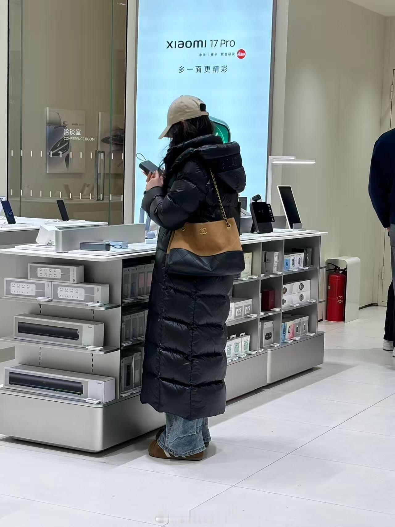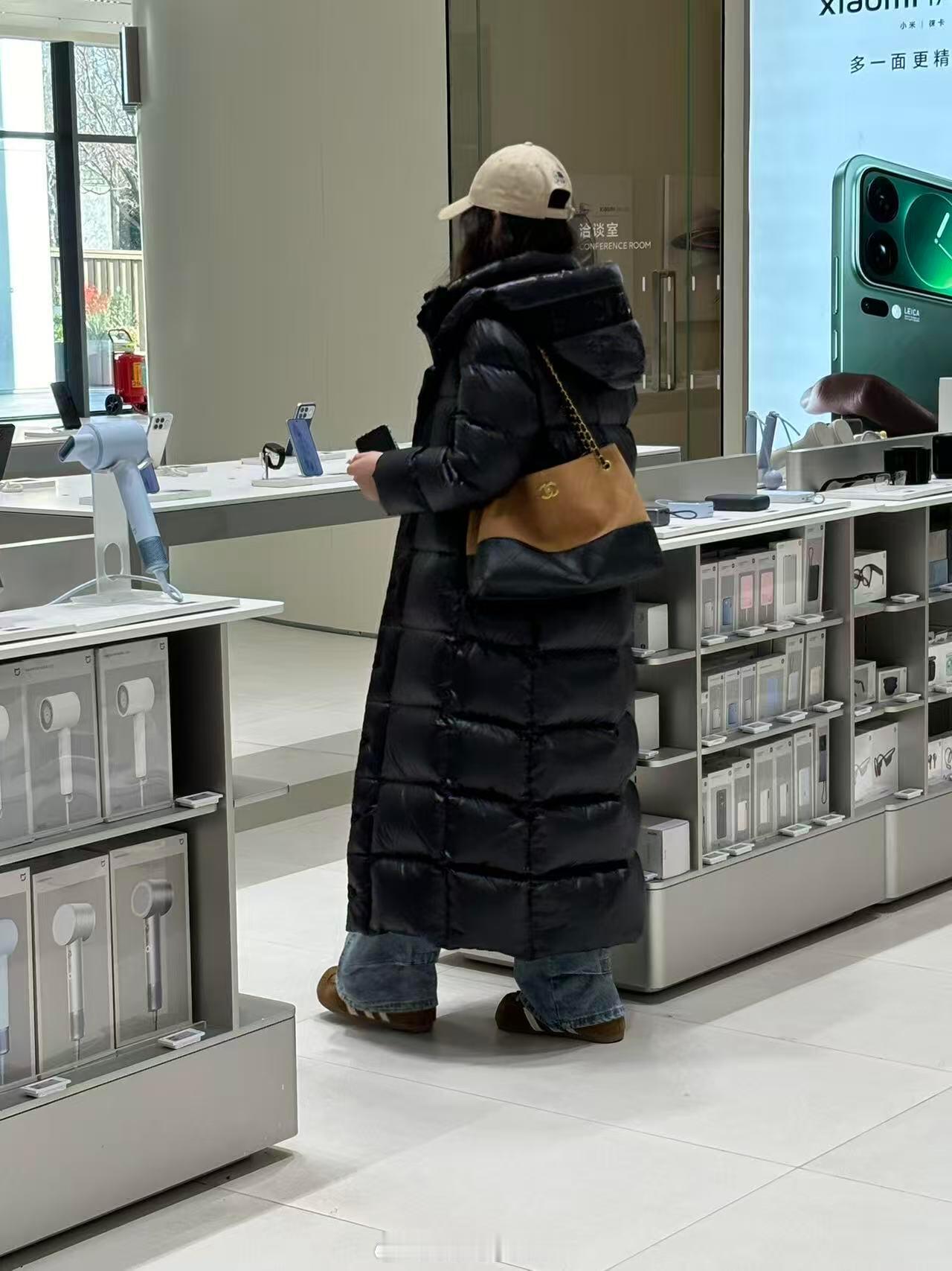 小米手机店看到的,想把这个羽绒服焊在身上这种黑金的面料最近好像很流行?不过看小姐姐穿着显得质感好好啊!看着也好厚肯定很暖和吧