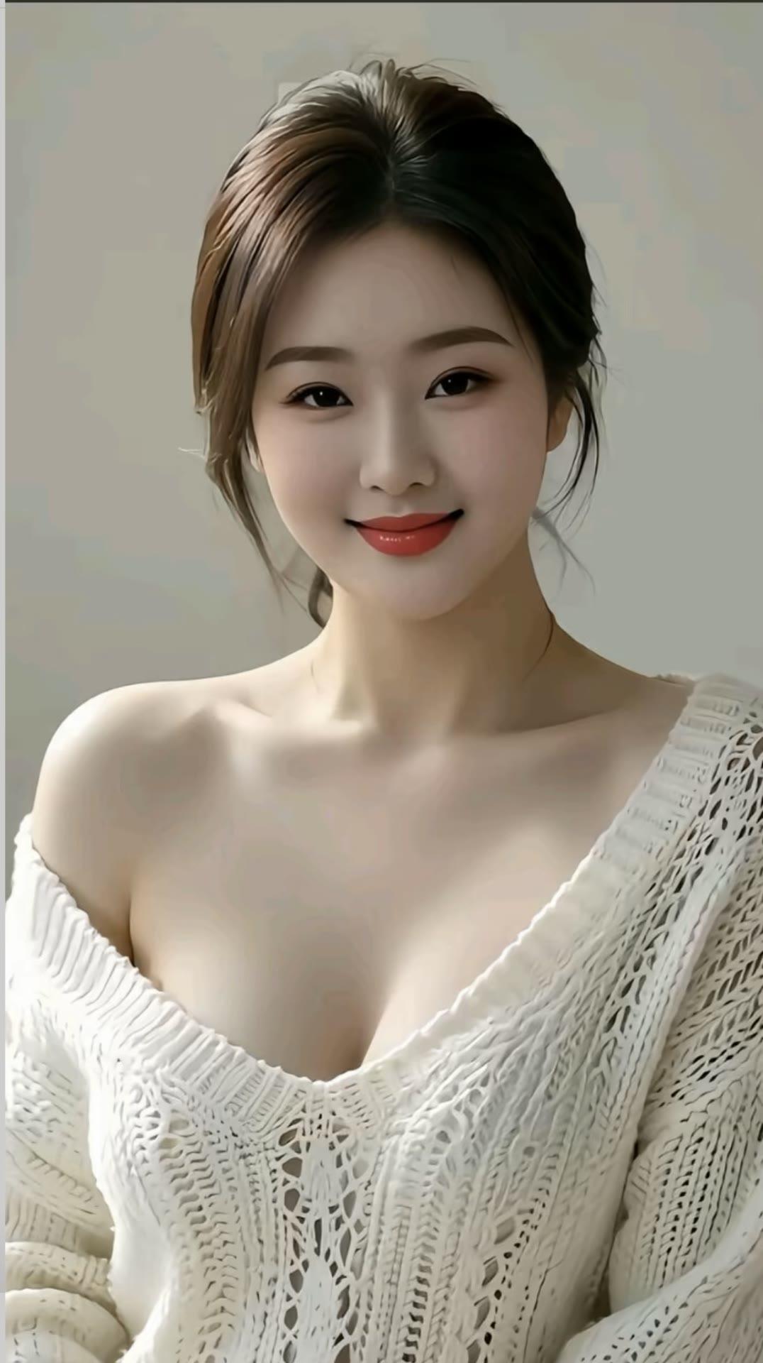 温柔甜美的少女,白色针织衫,微笑迷人