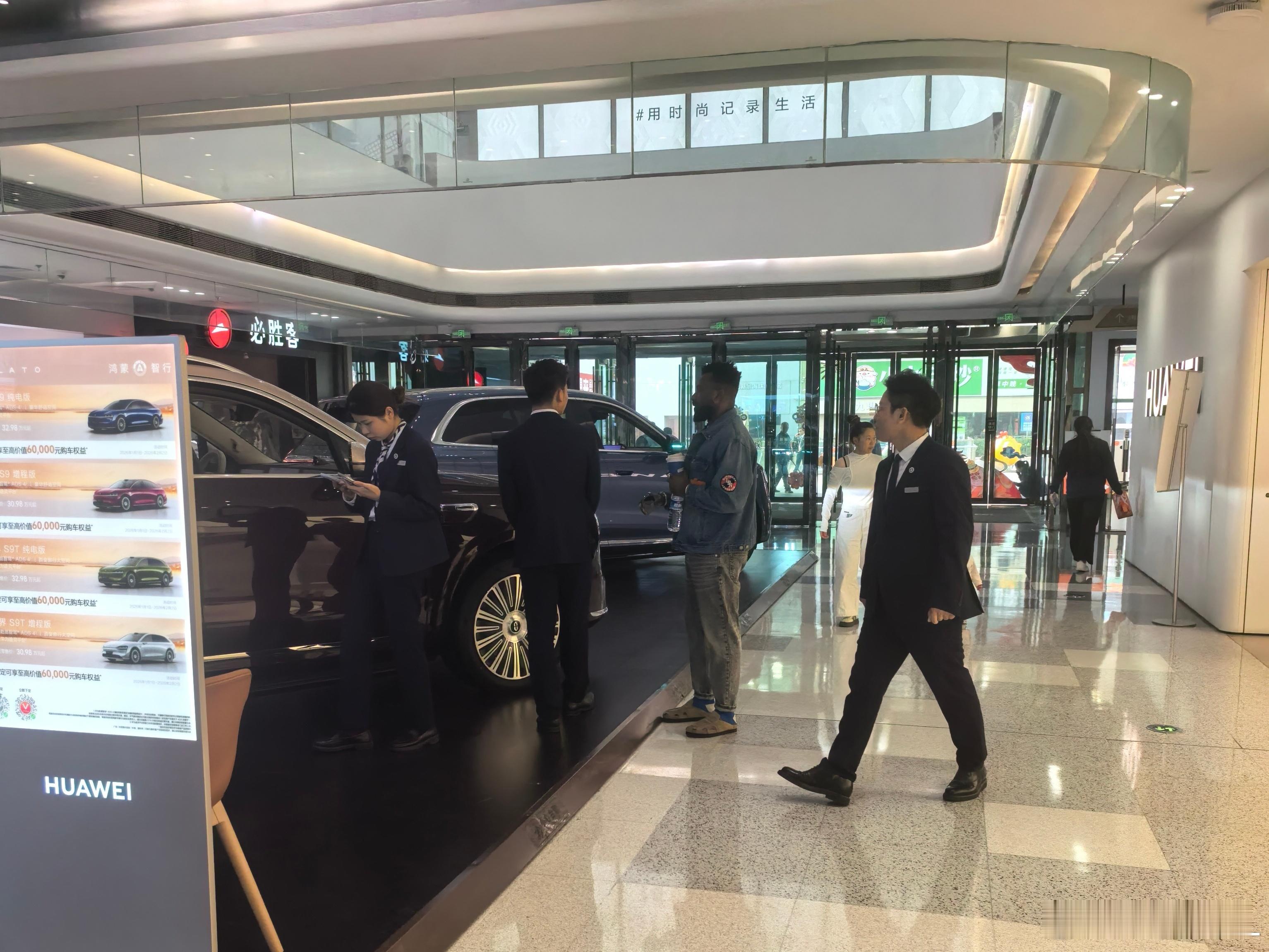 遇到个老外,对问界M9很着迷,一直在问各种问题。华为体验店里的销售,英语特别好。