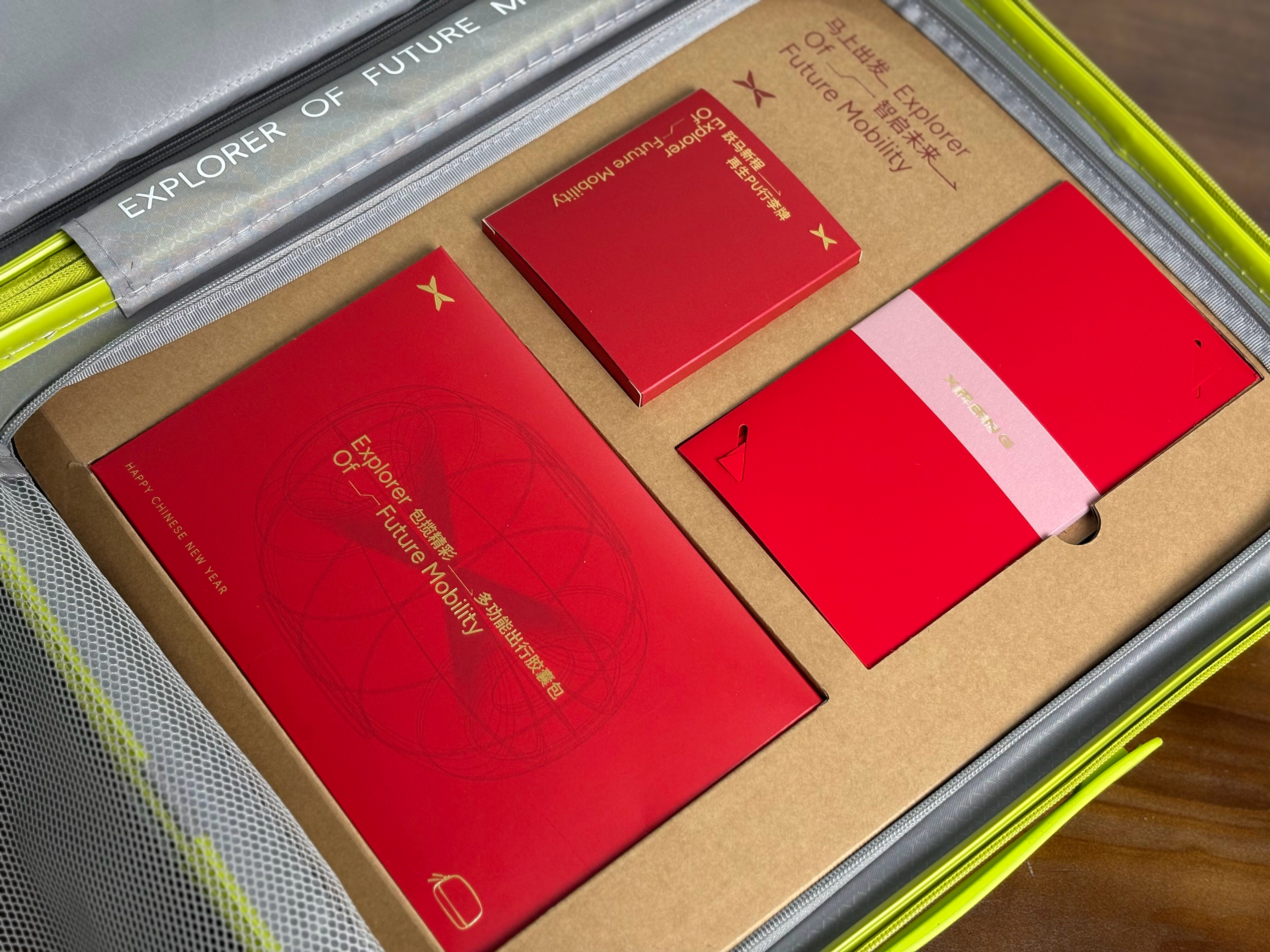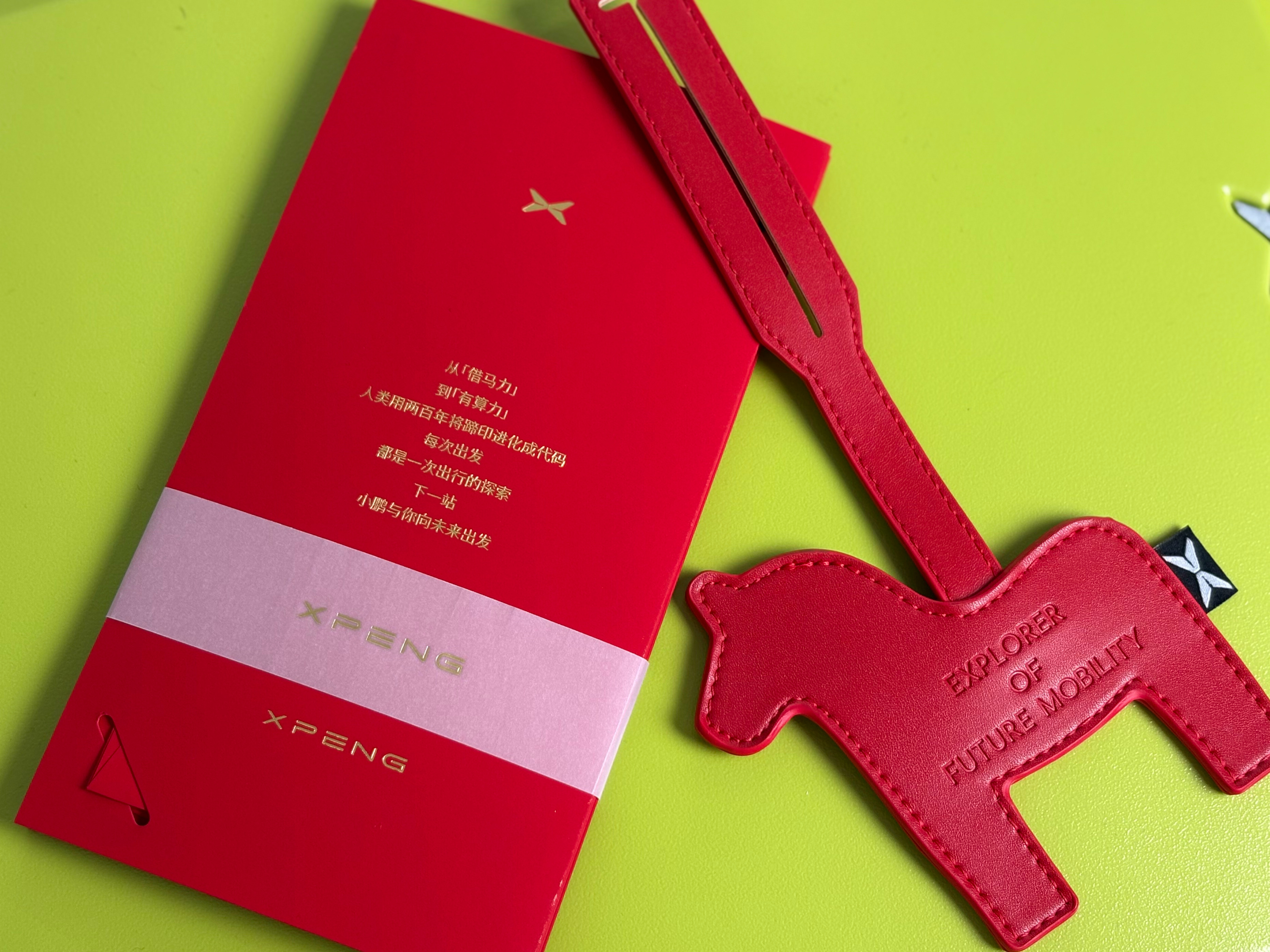 小鹏的新年礼物一个骚气十足的行李箱,一个洗漱包,一个行李箱吊牌,还有红包?