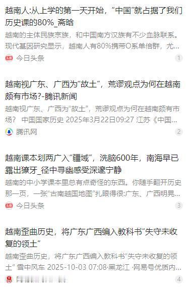 越南的野心非常可怕!现在的越南教育,在大中小的学校教育中,一直把广东广西作为其原来的属地。 麻烦看官老爷们右上角点击一下“关注”,既方便您进行讨论和分享,又能给您带来不一样的参与感,感谢您的支持!   越南的教育体系里藏着不小的心思,从小学到大学的历史、地理和民族相关课程中,始终有着放大历史版图的明显倾向,愣是把中国的广东、广西和古代越南的政权生拉硬拽绑在一起。不光是课堂教学,不少民间的传播内容里,甚至直接把两广说成是越南历史上的属地,或是其文化的源头区域。   这种错误的历史叙事,并不是越南官方教材明晃晃的法理宣称,而是用了更隐晦的方式。教材里从不会直接说两广属于越南,却靠着模糊的历史叙事,专门挑拣对其有利的历史片段大肆强调,把这种扩张性的历史想象,一点点渗透进学生的认知里,让孩子从小就形成错误的地域认知。   越南的教育尤其喜欢拿南越古国、百越族群做文章,反复强化这些和中国南方古行政区有过交集的概念。可他们刻意回避了最核心的事实,那就是两广在绝大多数历史时期,都处于中国王朝的有效管辖之下,越南古代的任何政权,都从未对两广拥有过合法的主权。   更让人警惕的是,越南还把两广和越南之间正常的历史交流,刻意包装成所谓的历史权利,混淆历史交流和领土主权的概念。他们只提百越族群的地域交集,却绝口不提百越只是先秦时期的族群统称,越南京族只是其中骆越一支,且从未主导过两广地区的发展。   其实越南这套歪曲的历史叙事,早就超出了单纯的学术研究范畴,而是和他们的国家战略、民族动员深度绑在了一起。这也是越南在南海问题上始终持强硬立场的重要原因之一,借着教育向年轻一代不断灌输这种错误观念,刻意塑造对外警惕、对内凝聚的民族心理。   早在越南后黎朝时期,当地就有了将两广视为所谓失守领土的错误说法,这种离谱的史观流传了六百多年,还被现代越南教育体系不断强化。2018 年越南教育培训部发布的大纲,更是要求中小学到高中的历史课,把古南越国叙事作为强化主权意识的核心工具。   越南的中学历史教材里,甚至用插图的形式,把广东、广西标注成古代越南的领土,还刻意删除了秦汉到明清时期,中国对两广长达千年的管辖史,只片面保留所谓祖先土地被掠夺的表述,用这种断章取义的方式扭曲历史真相。   有相关调查显示,越南 85% 的高中生和 70% 的大学生,真的相信广东广西原本是越南的土地,这种被教育误导的认知,在越南年轻一代中已经形成了不小的影响。甚至越南还会组织学生到中越边境开展所谓实地调研,刻意加深年轻人对这种错误史观的认同。   越南之所以这么做,说到底还是自身体量的限制。作为东南亚的一个小国,越南很难单靠经济和军事实力,在大国博弈中占据优势,于是就把教育当成了意识形态输出的低成本长效工具。不用投入大量的财力物力,就能通过课本给几代人灌输错误观念。   这种被歪曲的历史叙事,绝不仅仅是停留在课本上的文字,很容易演变成现实中的政治诉求,这也成了中越关系周期性出现波动的重要原因。一旦地区局势出现变化,这种错误的领土认知,就会被越南当成挑事的借口,成为双边关系中的不稳定因素。   对比来看,中国长期以来对周边国家的历史叙事问题重视不足,在相关的历史博弈上投入也有限。我们始终秉持着尊重历史、友好相处的原则,却忽略了部分国家会借着历史教育搞小动作,这就容易在双边的历史认知上形成落差,不断积累潜在的风险。   事实上历史真相本就清晰可考,公元前 214 年秦始皇平定百越后,岭南地区也就是现在的两广,就正式纳入了中原王朝的版图,秦汉至明清的史料,都有对两广明确的行政管辖记录。各地出土的秦汉官印、铁农具、兵器等文物,也都能佐证这一历史事实。   南越国本就是秦末汉人赵佗在岭南建立的地方政权,都城在如今的广州,其宫殿、墓葬遗址都在两广境内,出土的文物也全是汉字体系,这本是中国历史的一部分,却被越南强行歪曲成自己的开国历史,甚至把赵佗奉为越南的开国祖宗。   就连越南近代知名史学家陈仲金,都在《越南通史》中明确指出,赵佗是中国人,南越国本质上是中国体系内的地方政权,可这样的客观史实,却被越南现代教育刻意忽略和掩盖,只为了迎合其扩张性的历史想象。   历史从来都不是任人打扮的小姑娘,越南靠着歪曲历史、误导教育的方式,试图制造所谓的领土依据,终究是站不住脚的。但我们也必须警惕这种长期的历史误导,及时做好历史真相的传播和普及,打破错误史观的影响,才能让双边关系建立在尊重历史的基础上。
