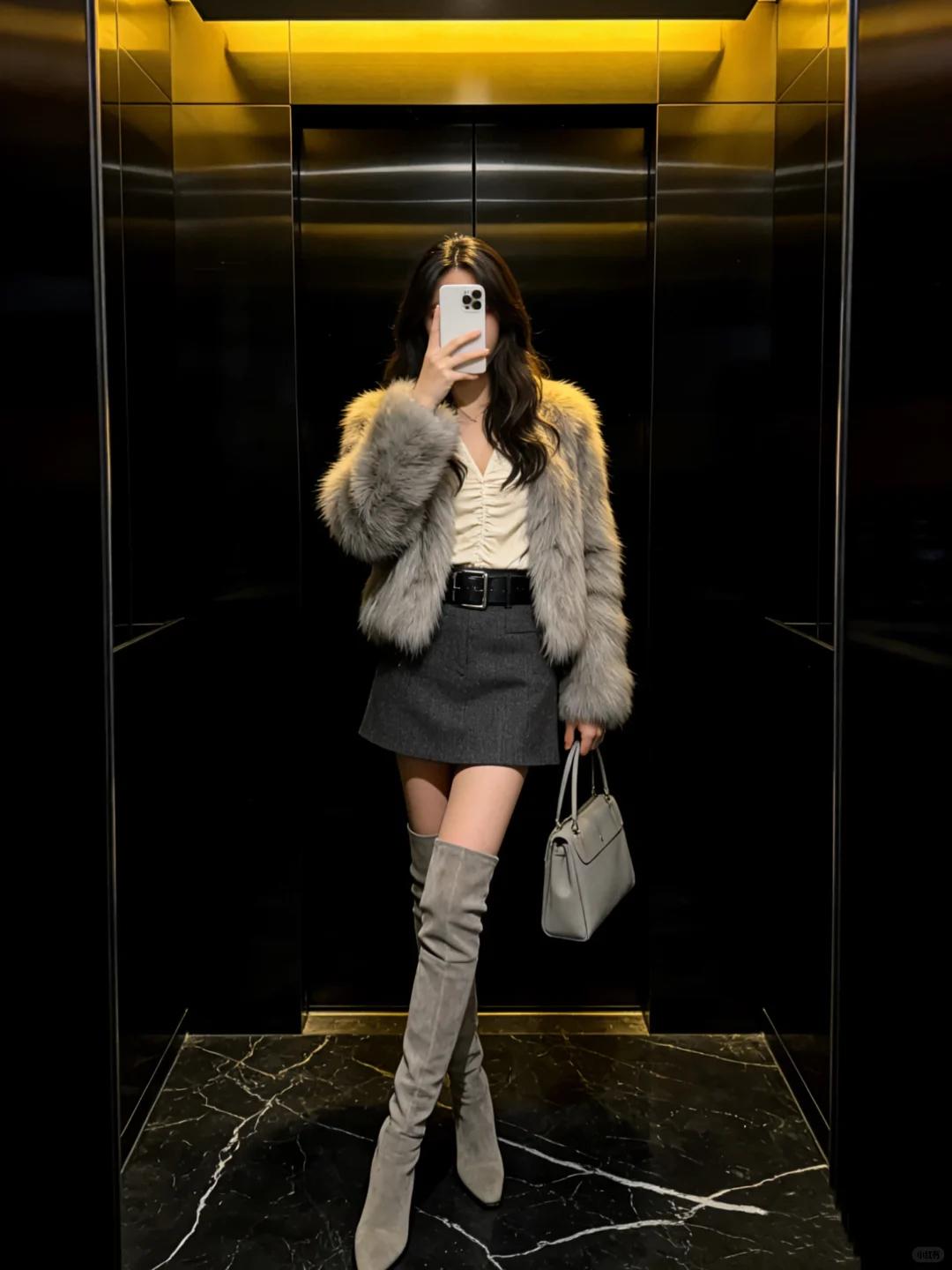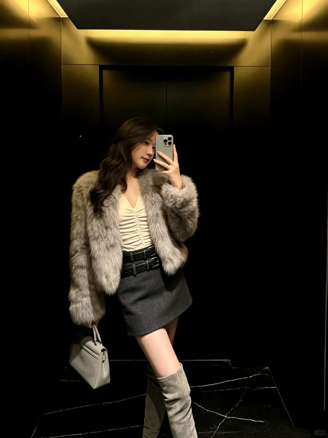 如何穿搭显得淑女一点皮草➕靴子短裙!拿捏冬日气质姐姐穿搭
