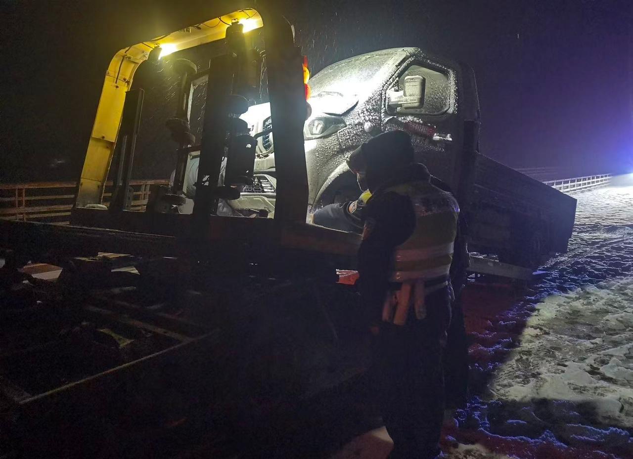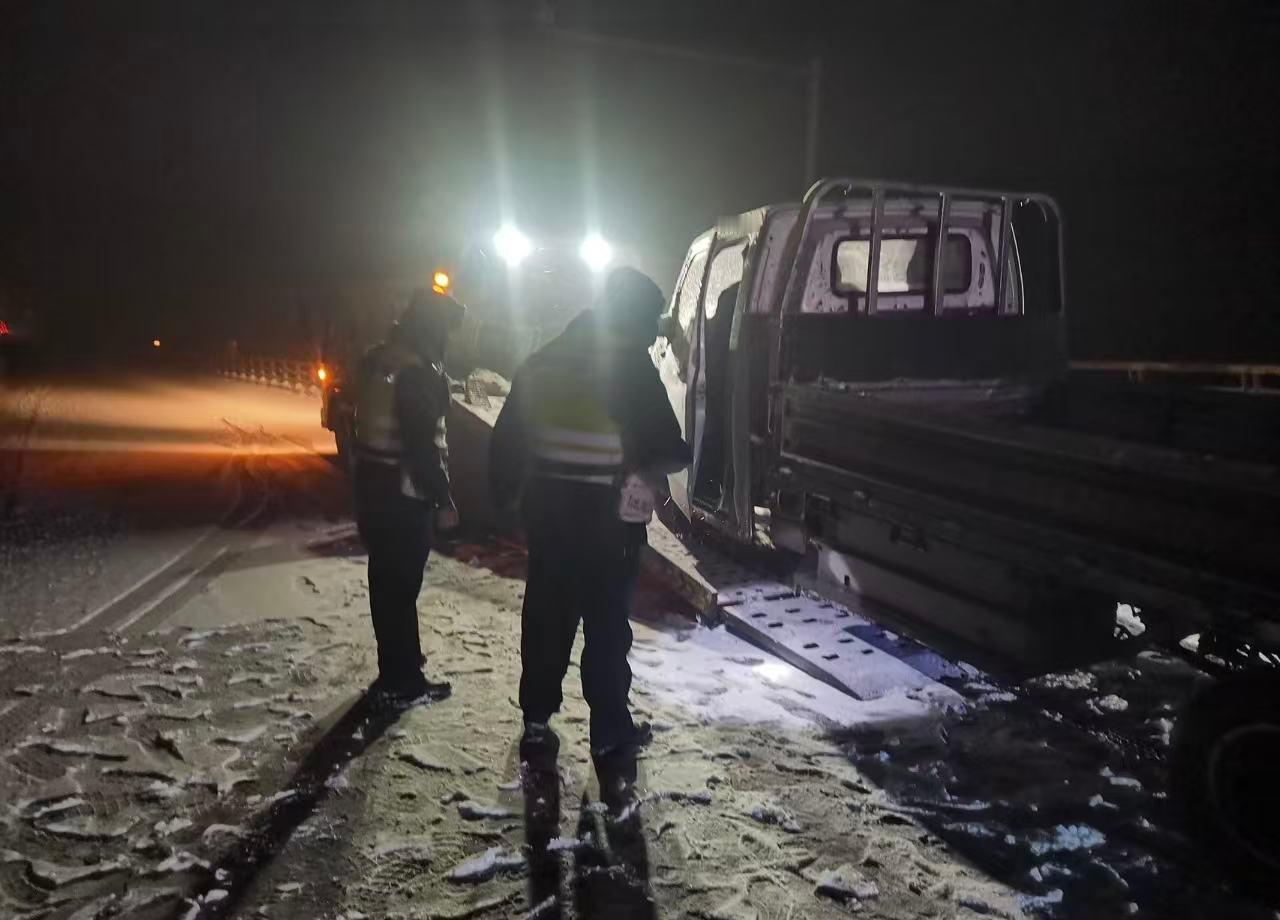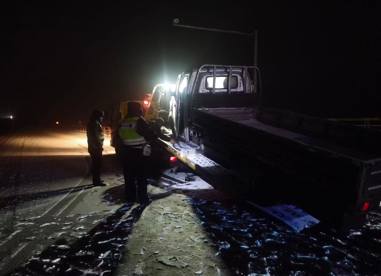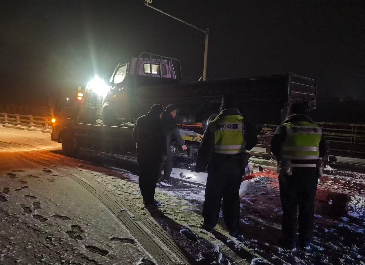 【雪夜有我在,出行请安心】1月29日晚,登封交警在巡逻中发现一辆汽车因路滑撞损停靠,车主正焦急无措。民警立刻上前,在车辆后方摆放反光锥提醒后方来车,小心避让;联系拖车前来救援,并将车主带上警车取暖避寒,解决了车主的困境。