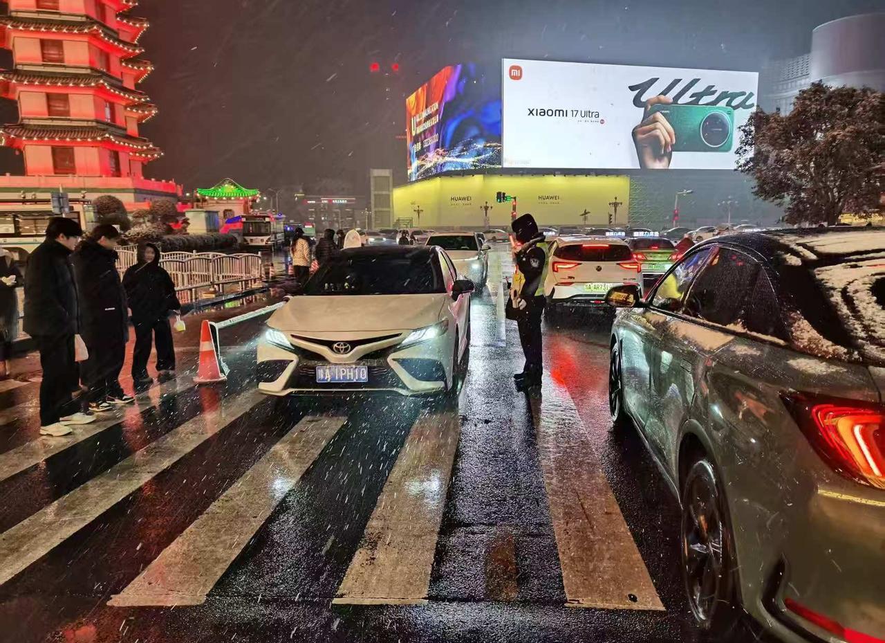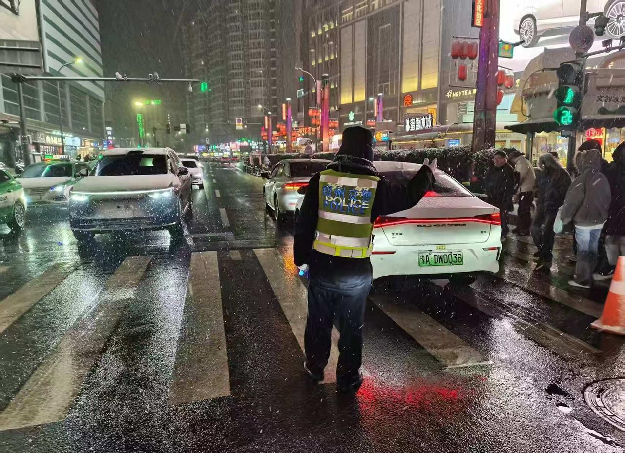 【雪夜荧光绿,守护平安路】1月29日晚,郑州飘雪,郑州交管四大队民警的身影在街头清晰可见,他们在各重点路口坚守岗位,指挥疏导、提醒控距,风雪中手势坚定、声音清晰,全力守护道路有序畅通。
