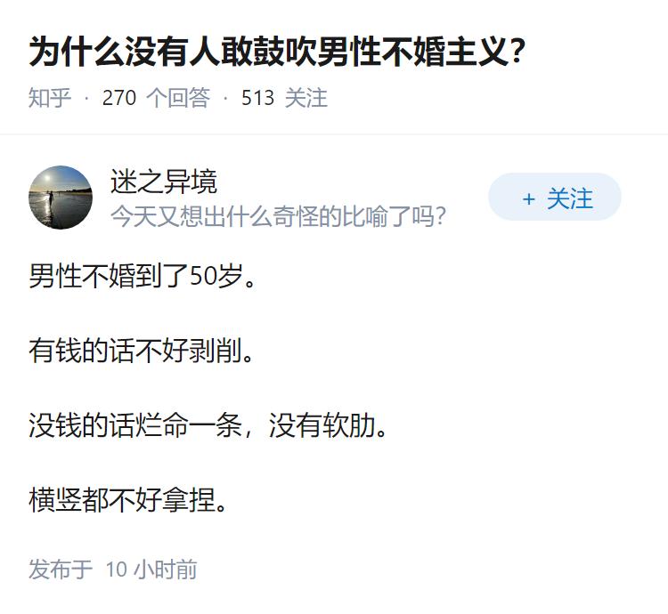 为什么没有人敢鼓吹男性不婚主义? -----------------------