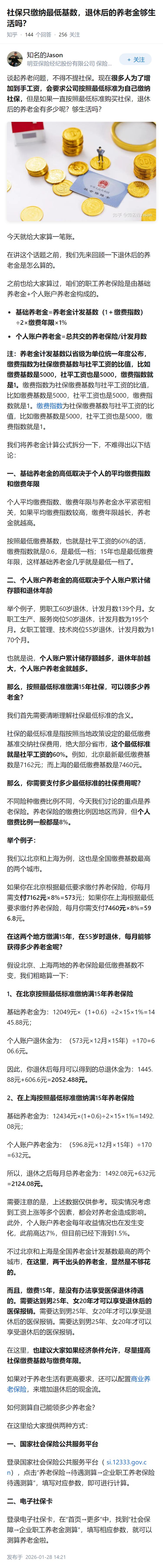 社保只缴纳最低基数,退休后的养老金够生活吗?