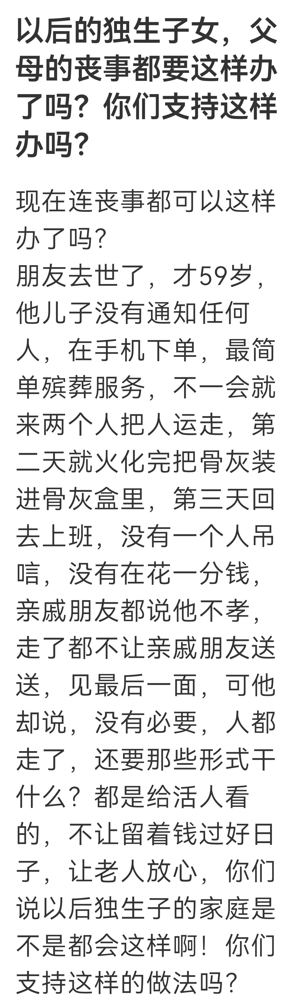 对年轻人以这样的方式最后送走自己的父母,你认可吗?