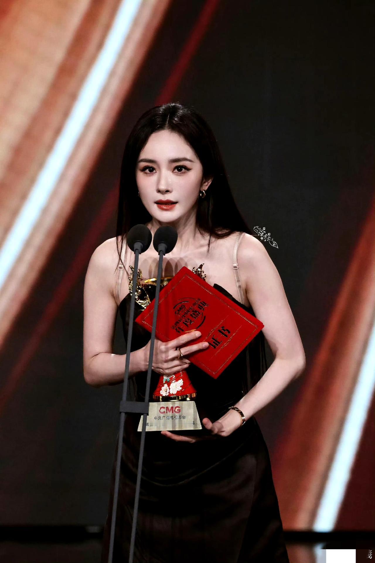 杨幂斩获总台“年度女演员”!一袭黑裙领奖,实力与美貌双杀 恭喜杨幂!在第四届