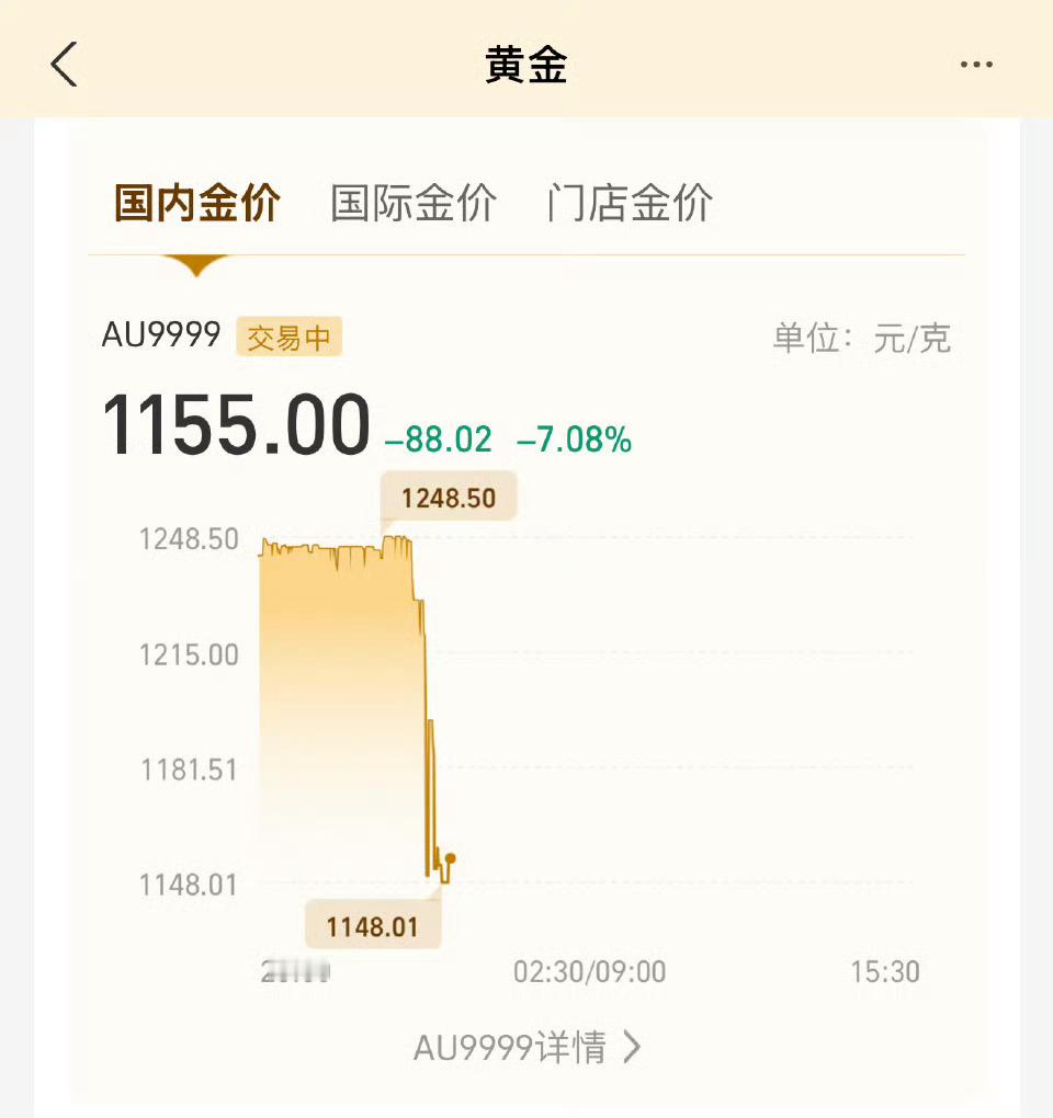 黄金暴跌昨天还看到线下金店一克要1499,一大早就说金价开始跌了无论是炒股还是炒贵金属这类,不要盲目跟风,虽说黄金是世界上最保值的资产,但是一时一个价,谁知道呢?万一哪天又掉回700一克,高位进去的不得亏死?