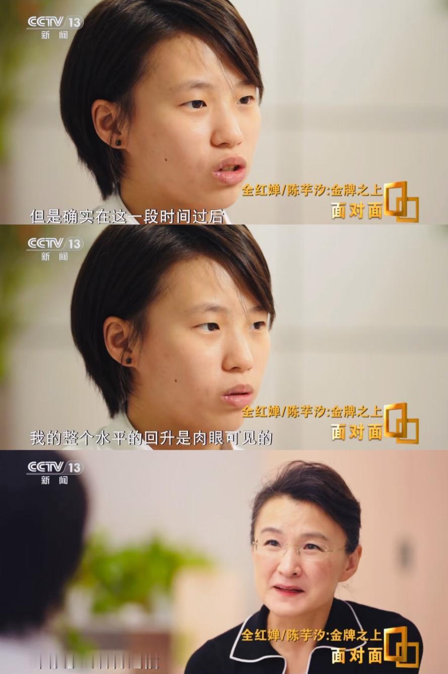 央视镜头前的陈芋汐, 身上有一种独特的"静气"。 面对央视董倩犀利的提问及与强