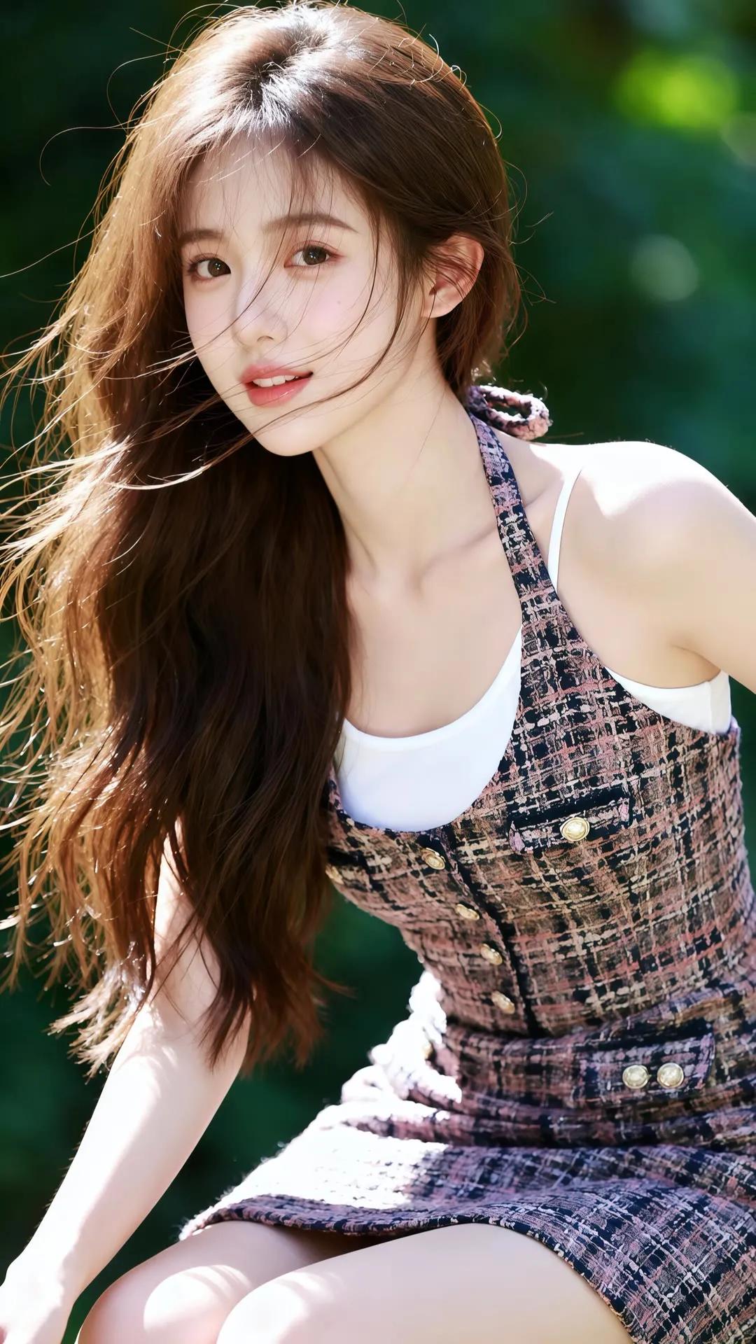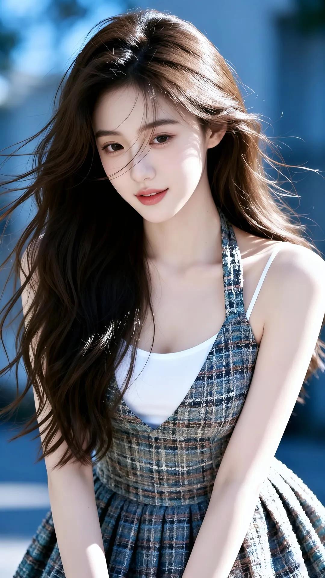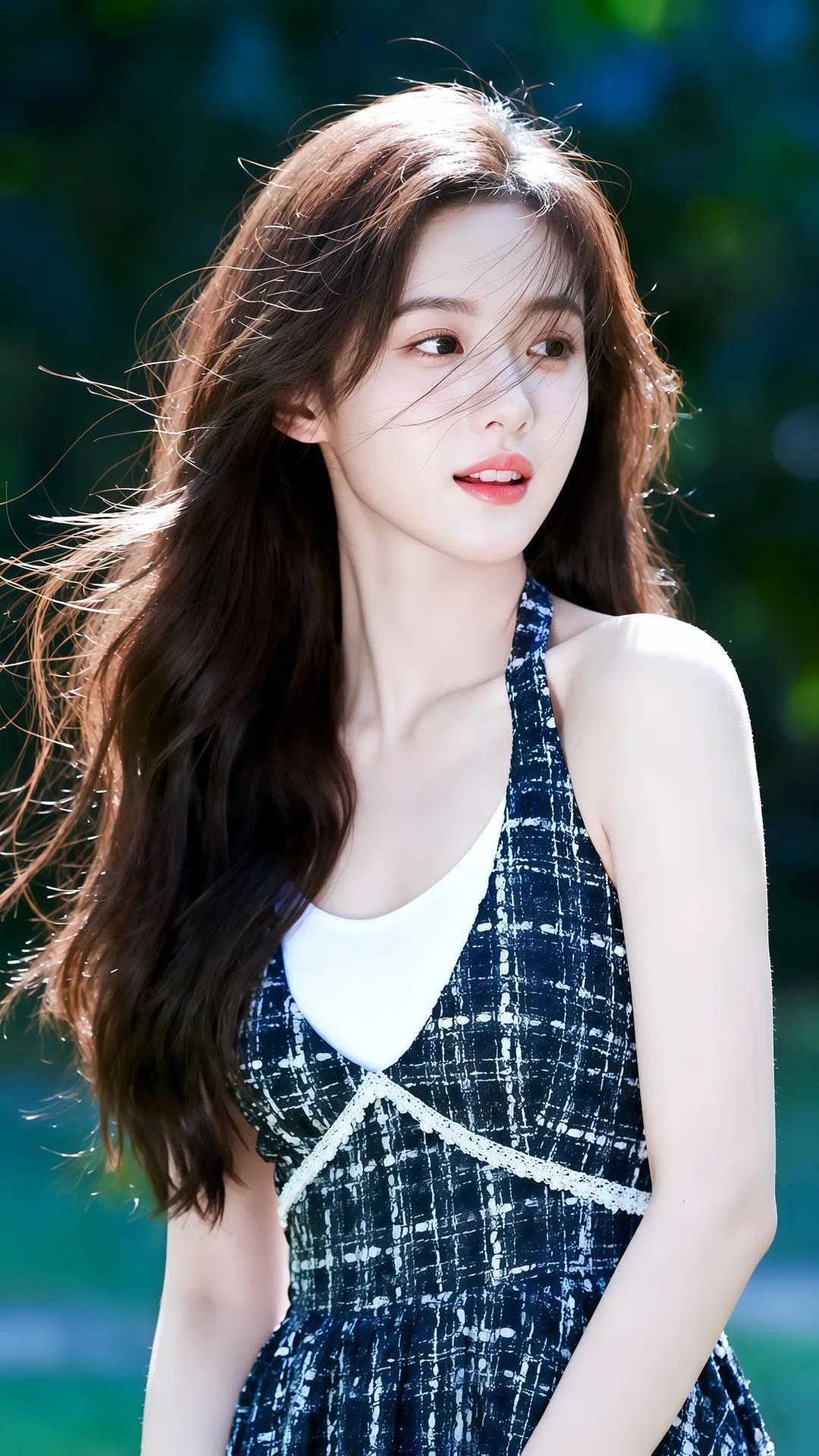 夏日清新少女,海风轻拂,笑靥如花