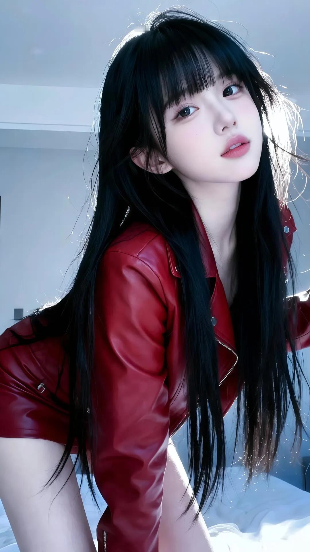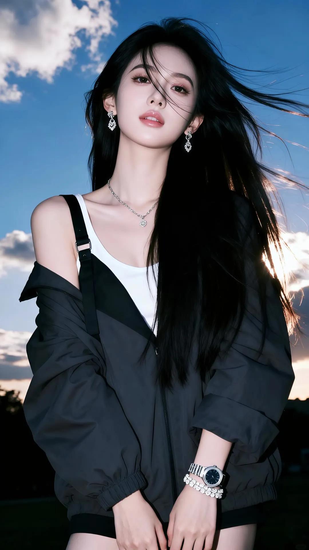 冬日暖阳下的温柔侧颜,黑发随风飘逸,尽显优雅与宁静。