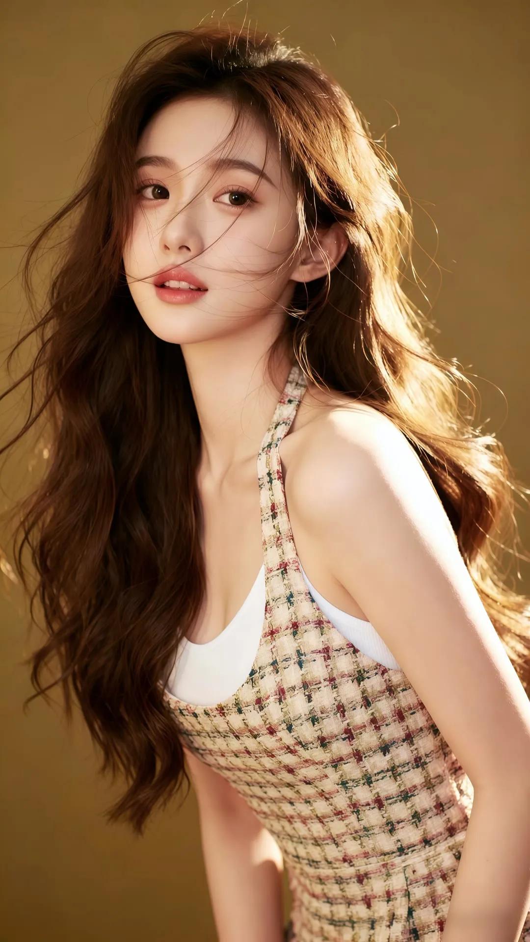 温柔微笑,自然卷发,甜美动人!😊✨