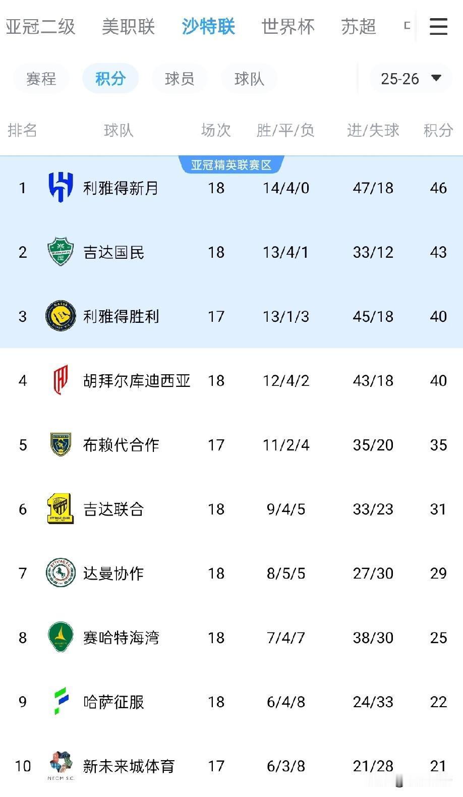 天佑C罗拿沙特冠军,利雅得新月连续2轮比赛被逼平只领先3分了! 在本轮沙特联赛