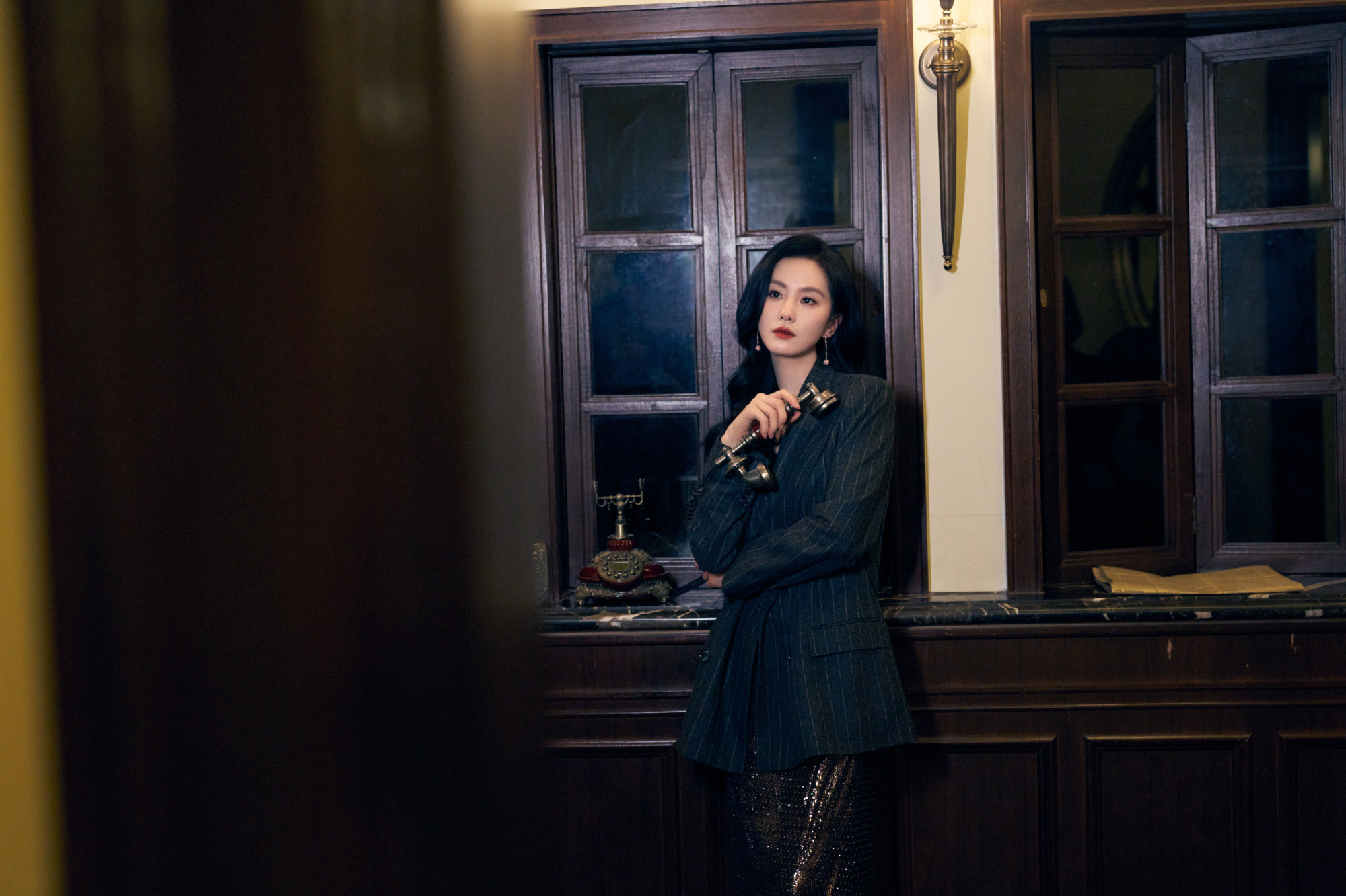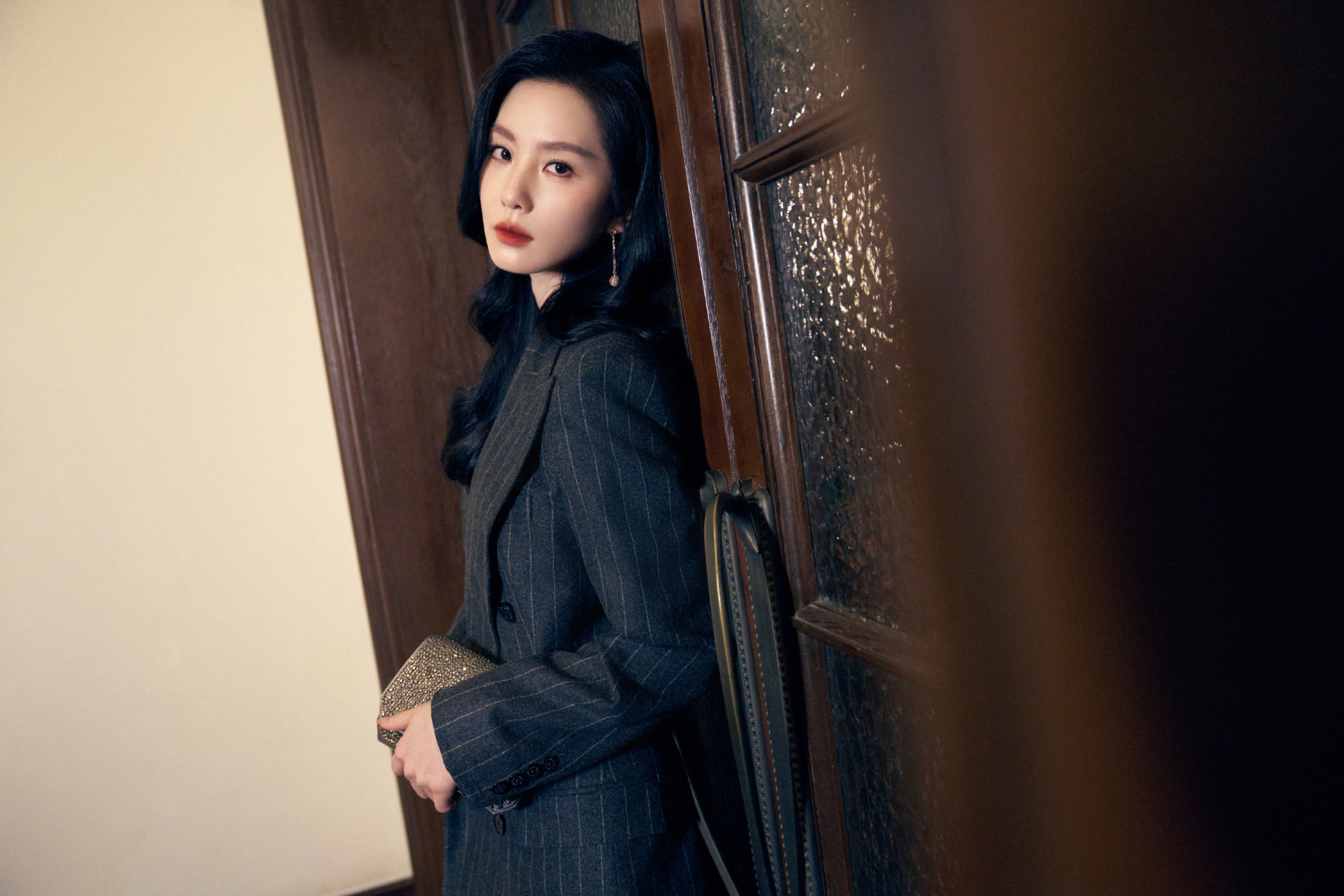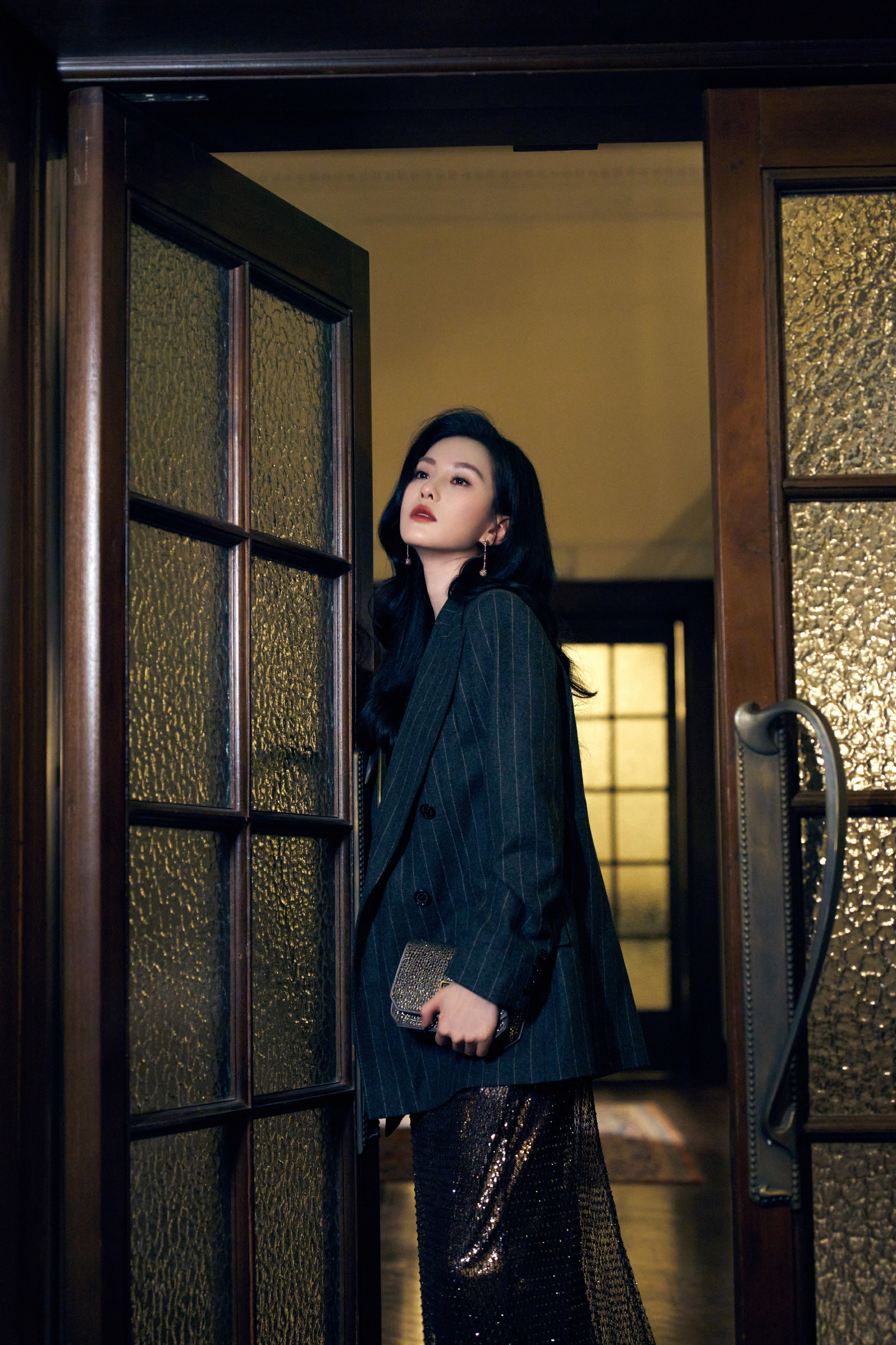 刘诗诗条纹西装,鎏金亮片随身形闪烁,静谧而迷人。刘诗诗
